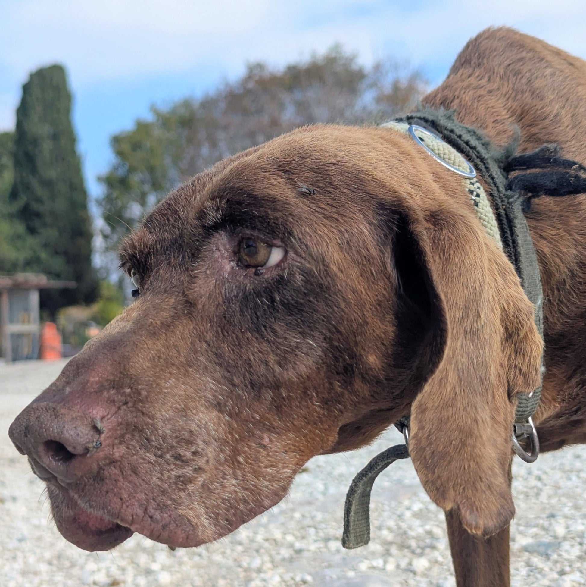 Medium-sized senior brown hunter male. Calm and friendly