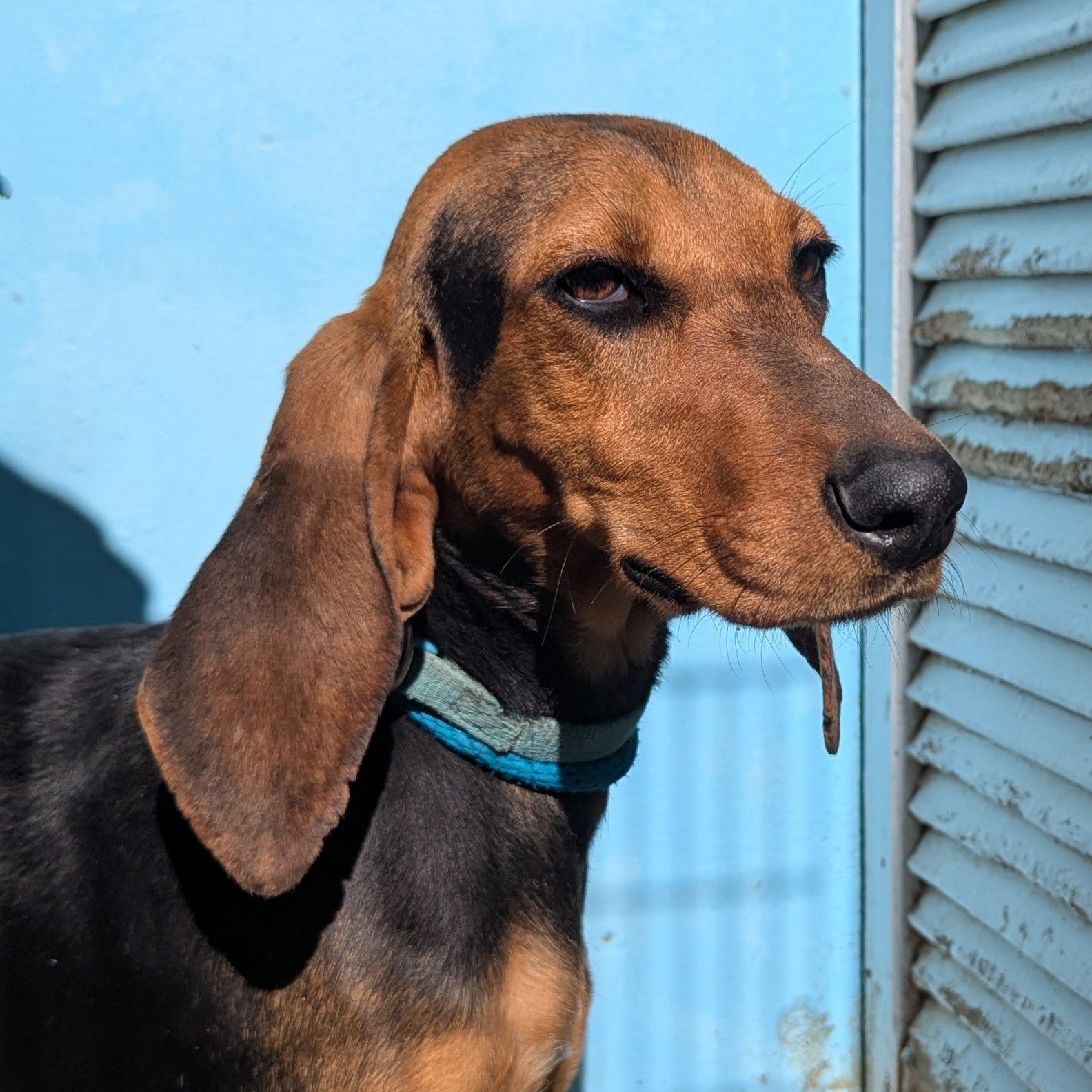 Среднего размера мальчик охотничей породы. Окрас черный с коричневым. Дружелюбный, спокойный