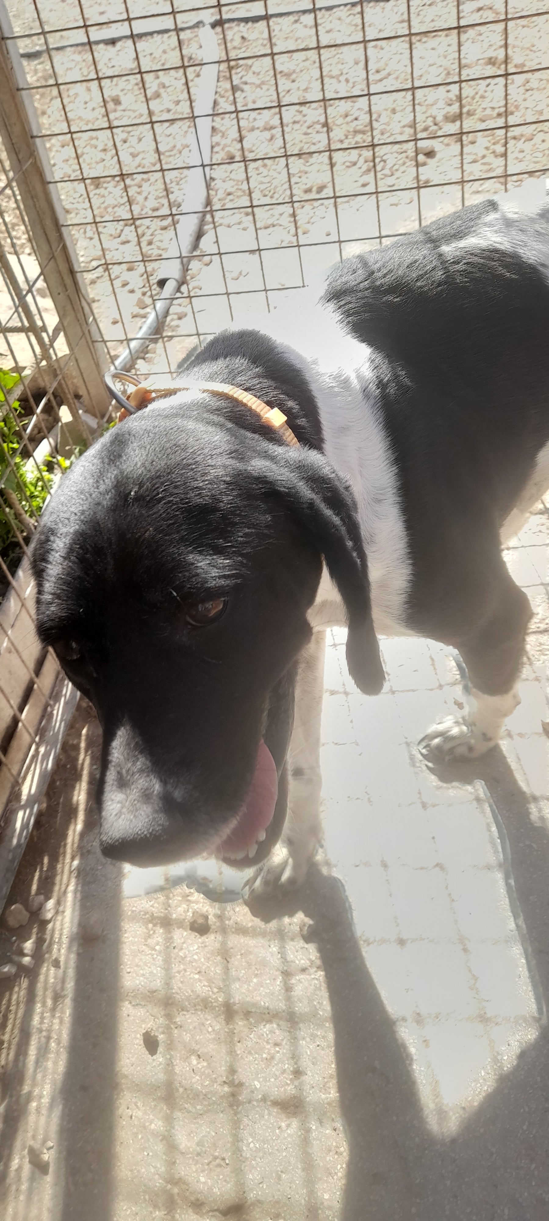 Very friendly black and white boy, walks nicely on lead and good with other dogs. Loves human company.