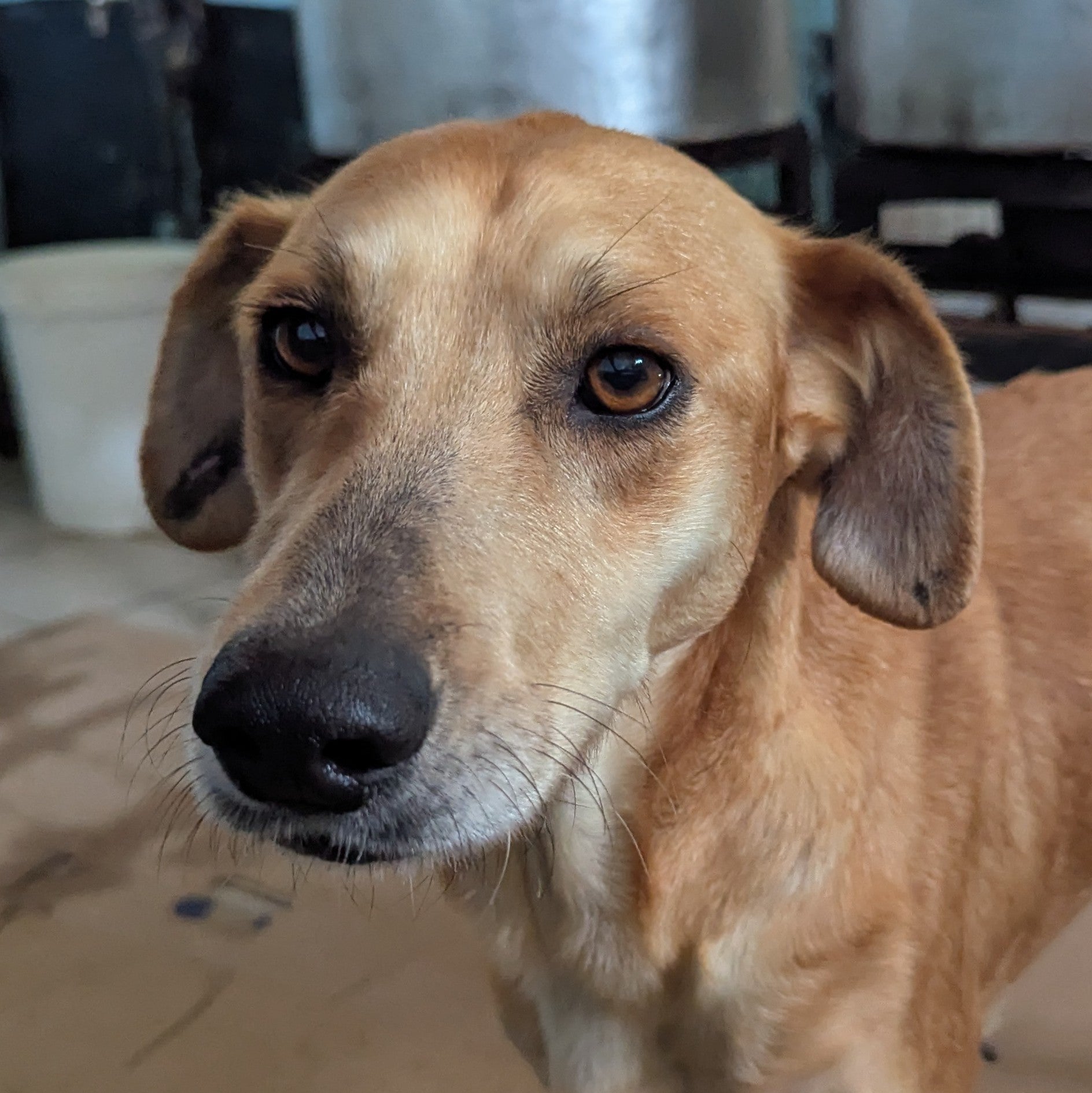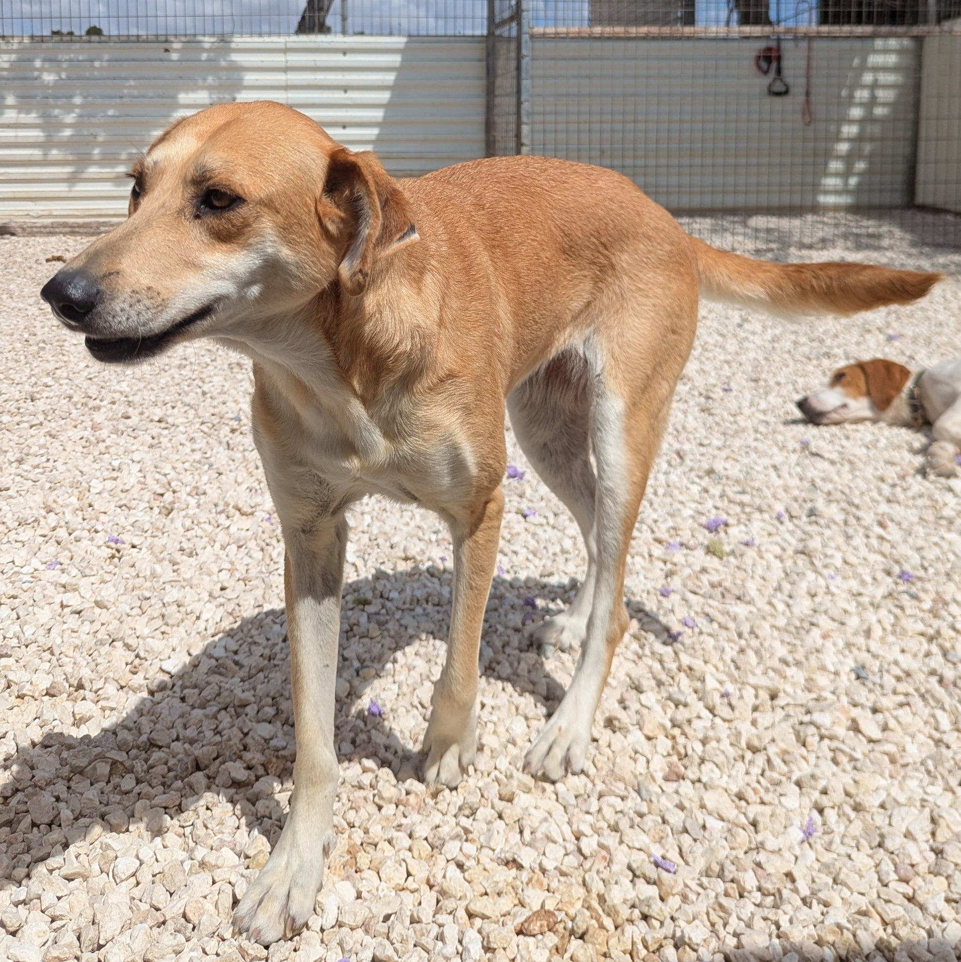 Среднего размера девочка ярко-золотистого окраса с палевыми грудью, животом и лапами
