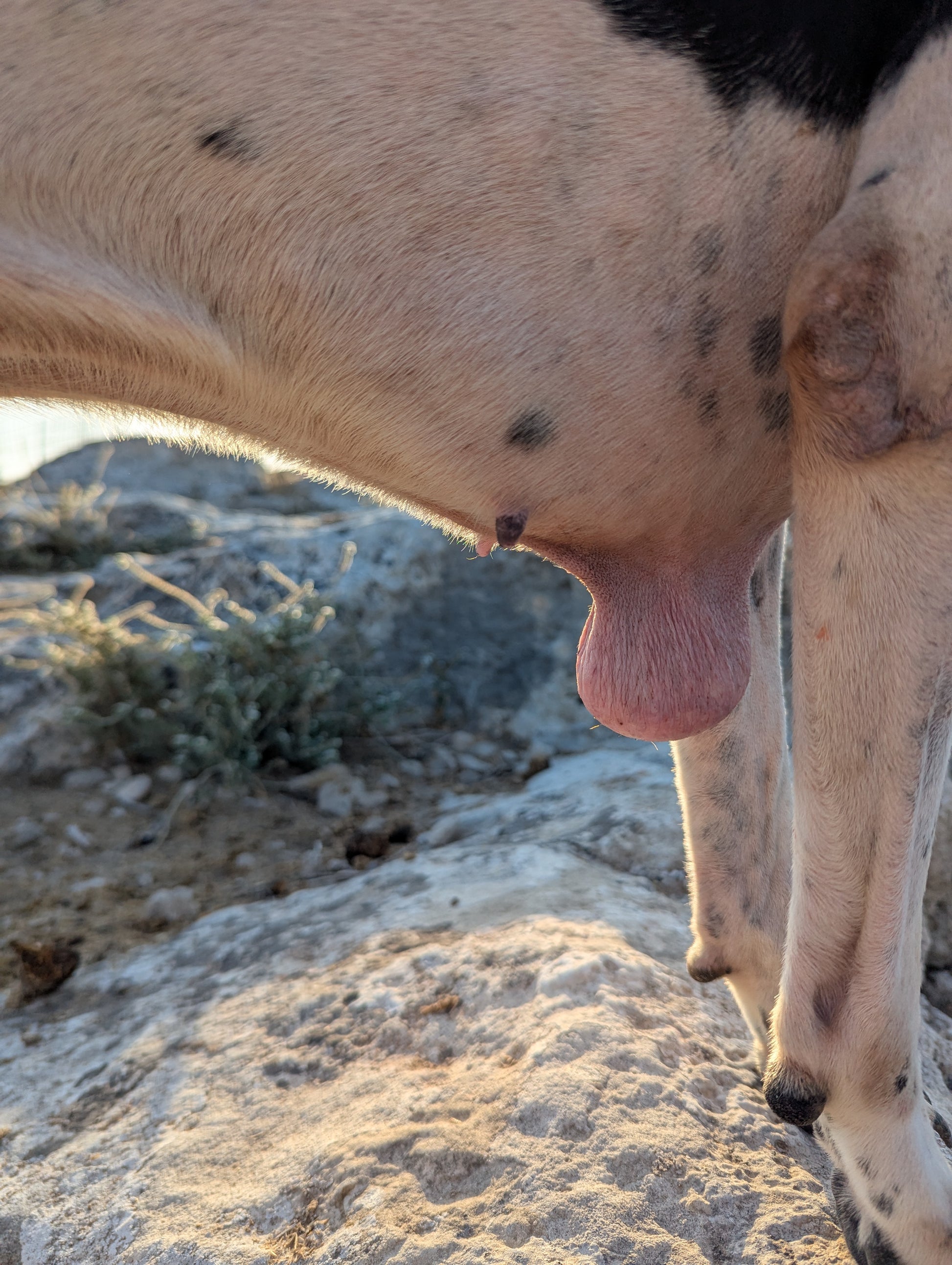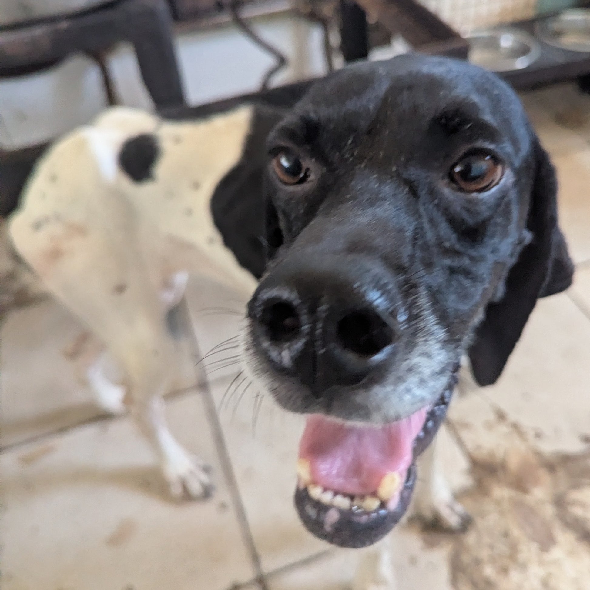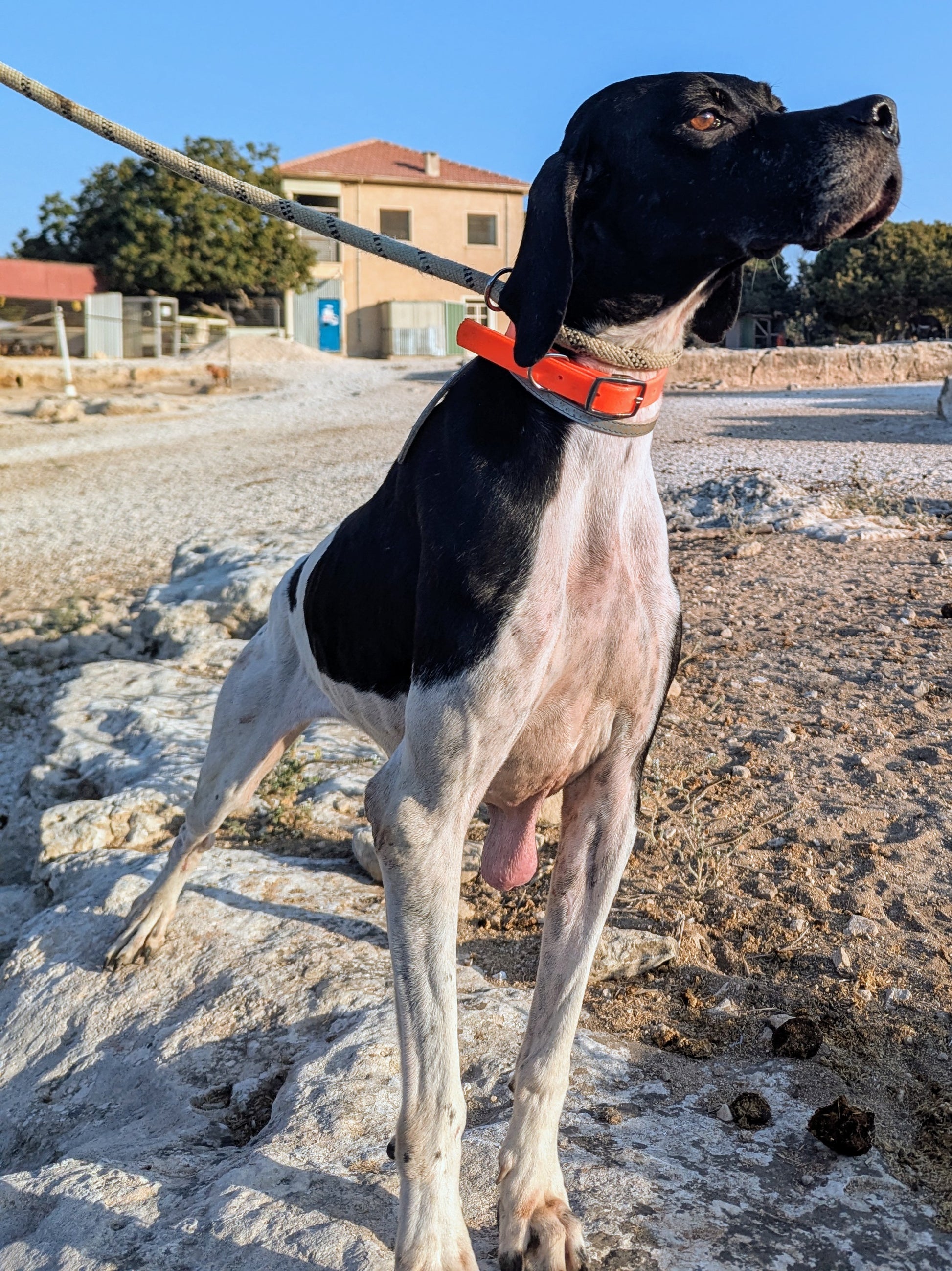 Big-sized female Pointer, white with black patches. Shy but friendly. Supervised by Svetlana.