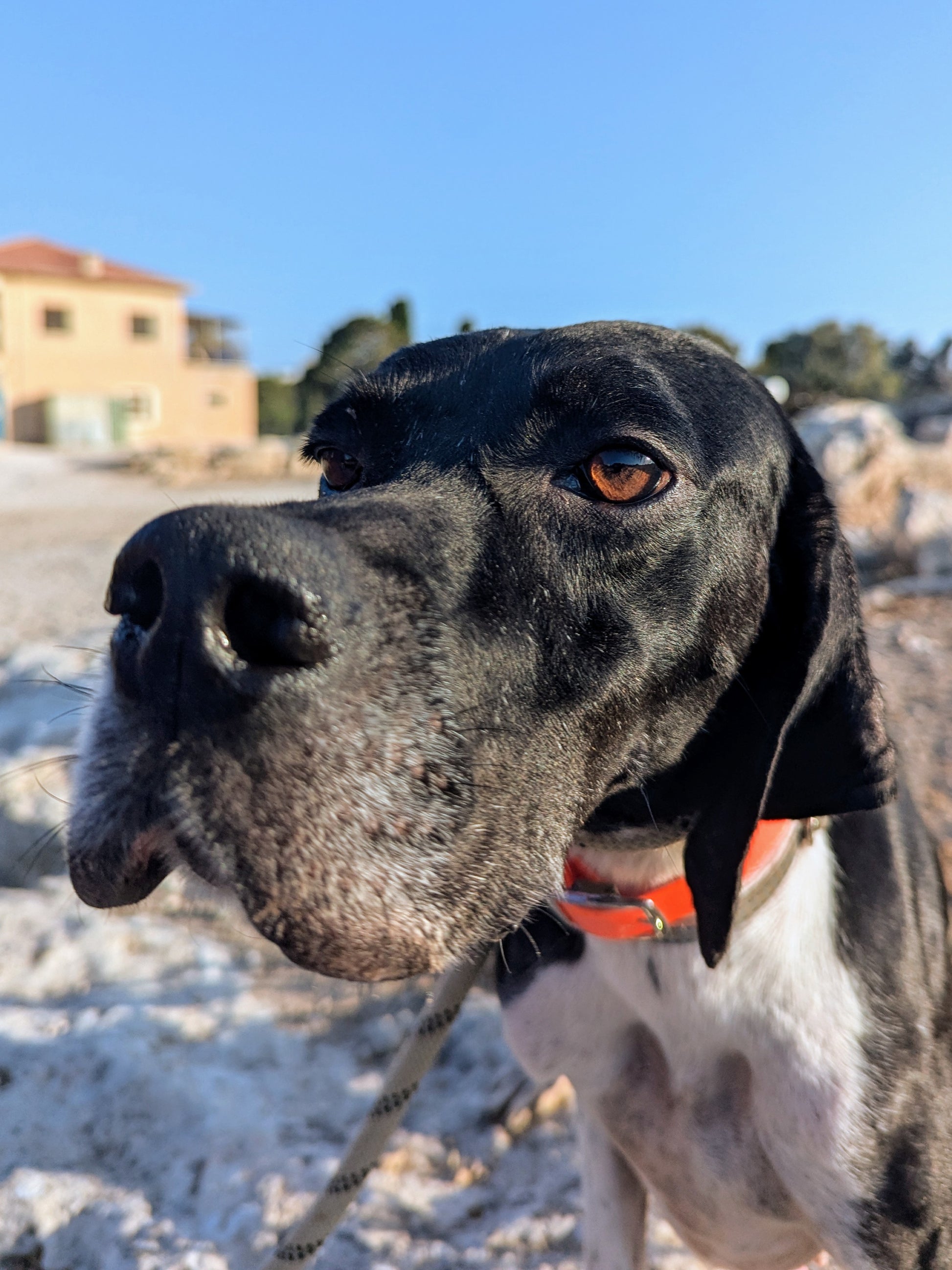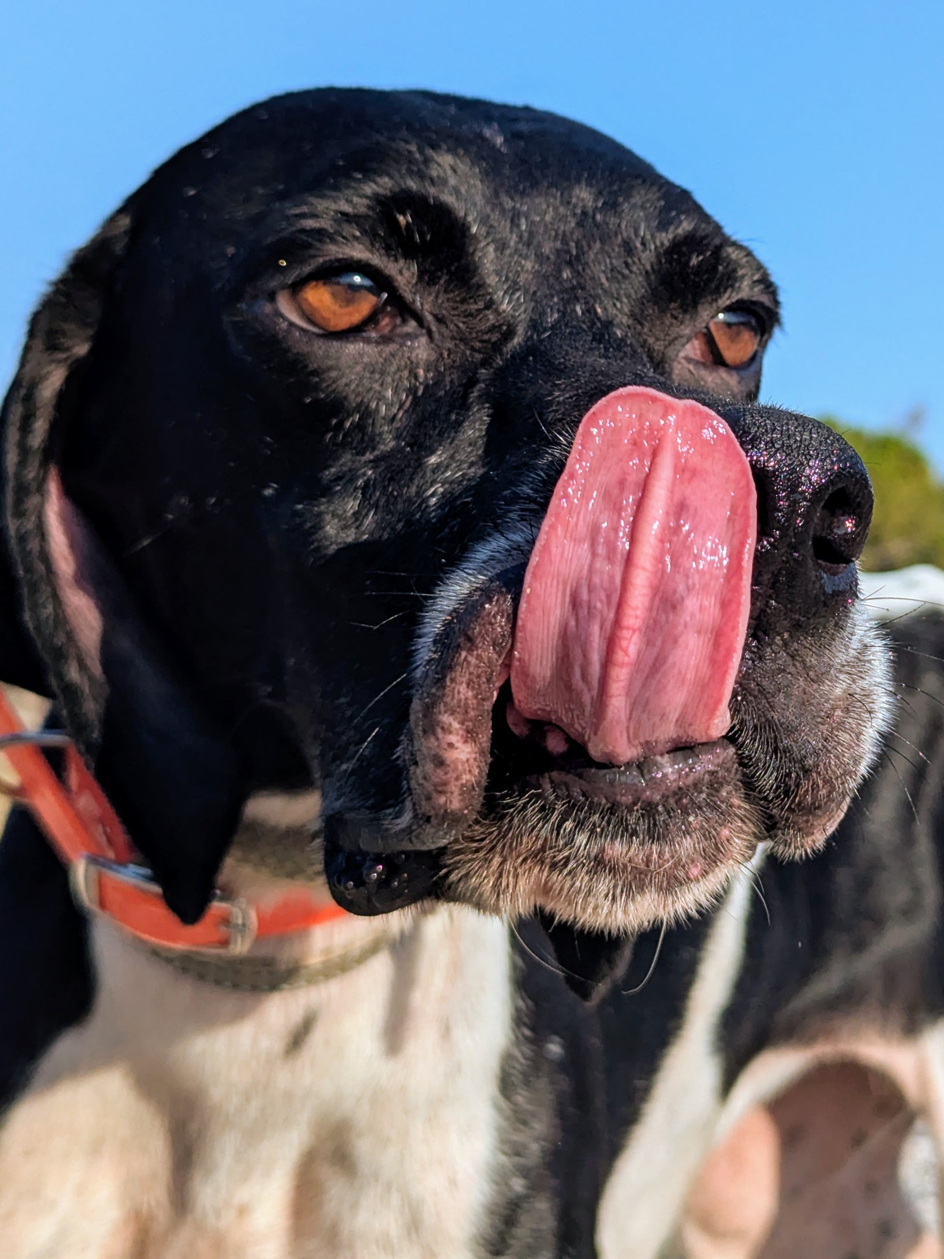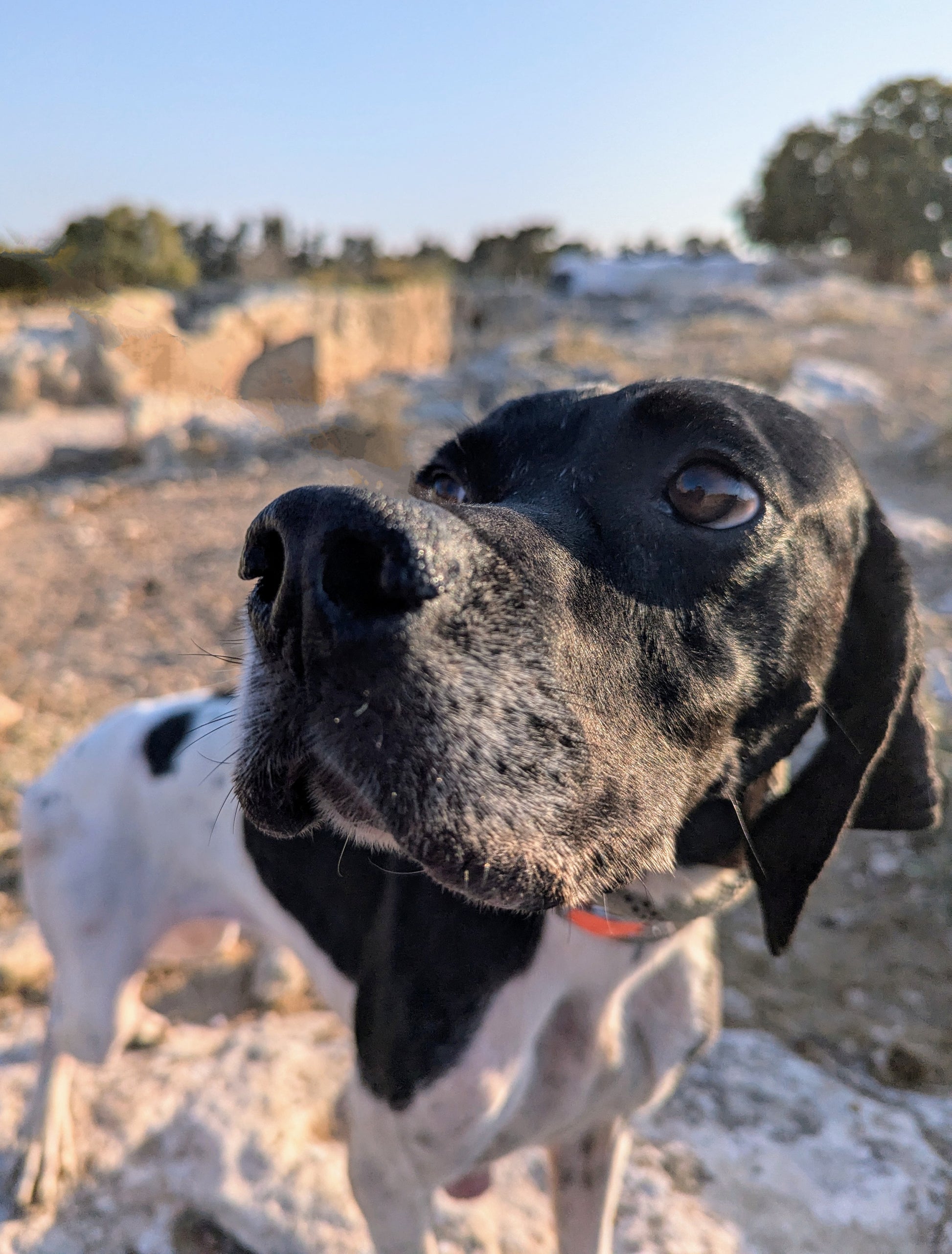 Big-sized female Pointer, white with black patches. Shy but friendly. Supervised by Svetlana.