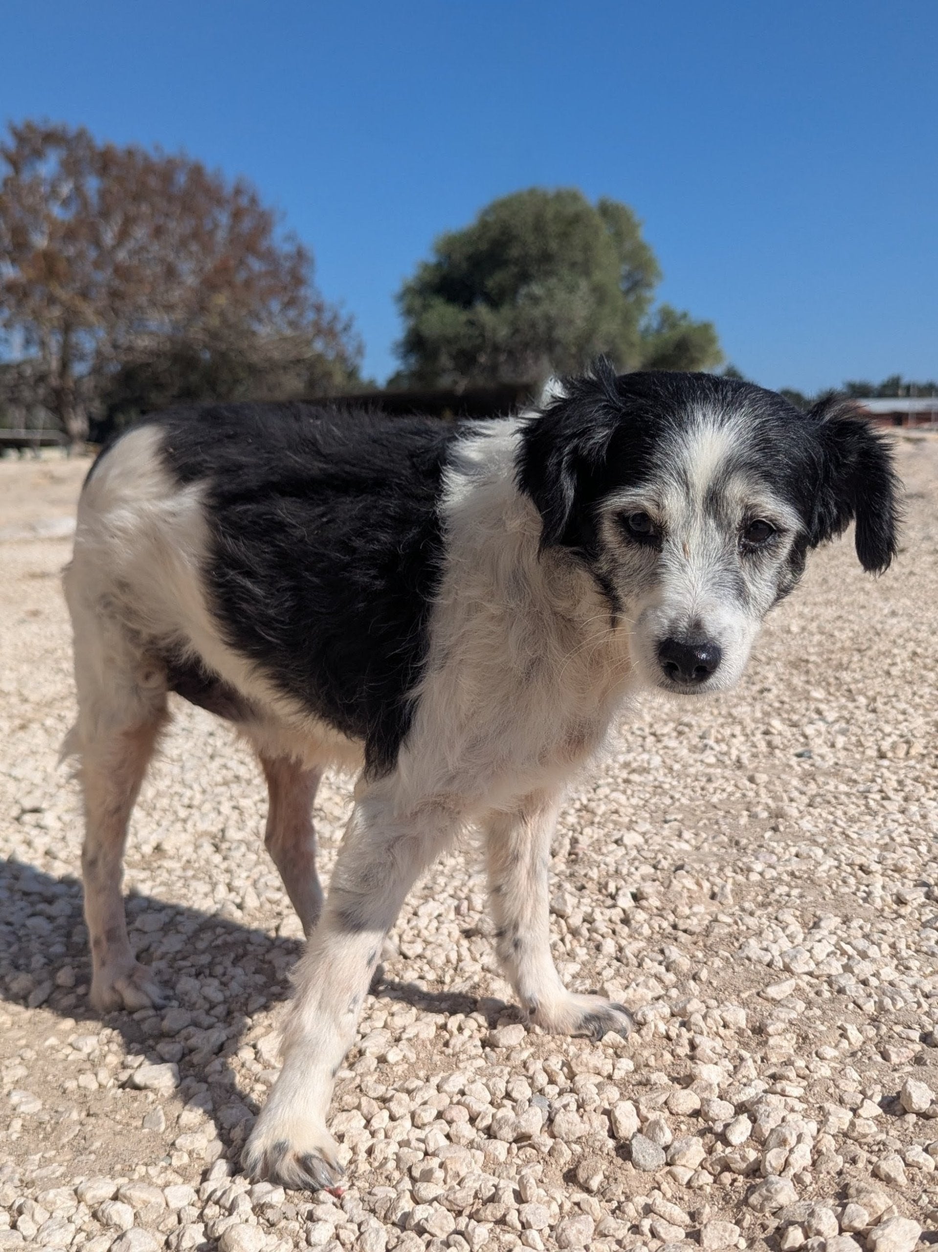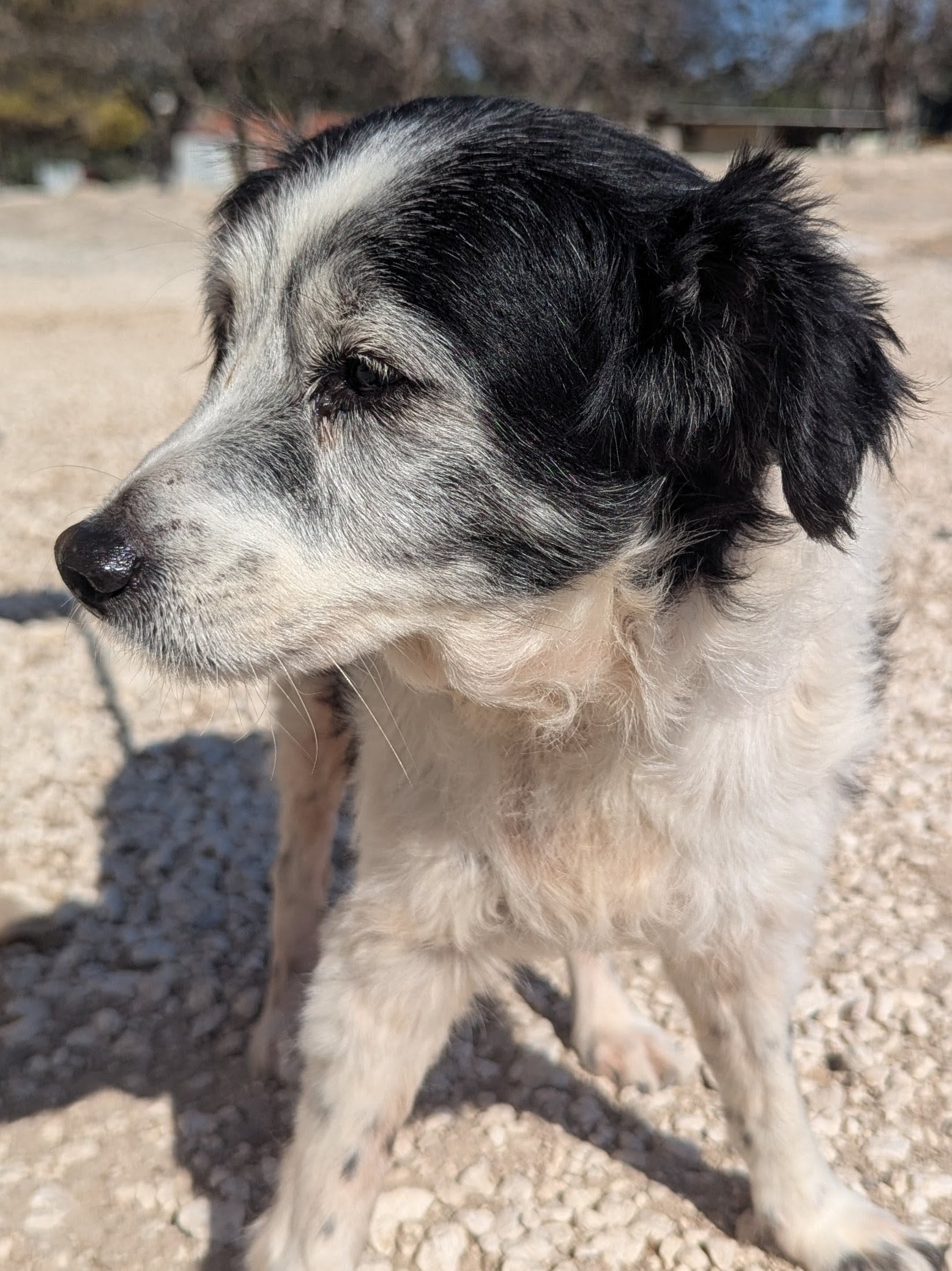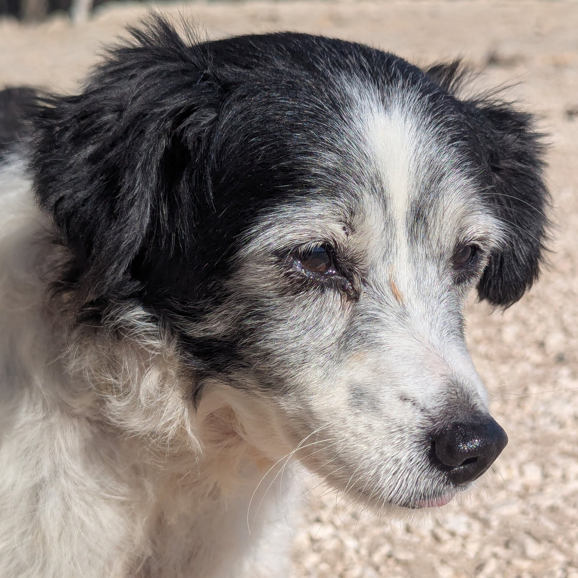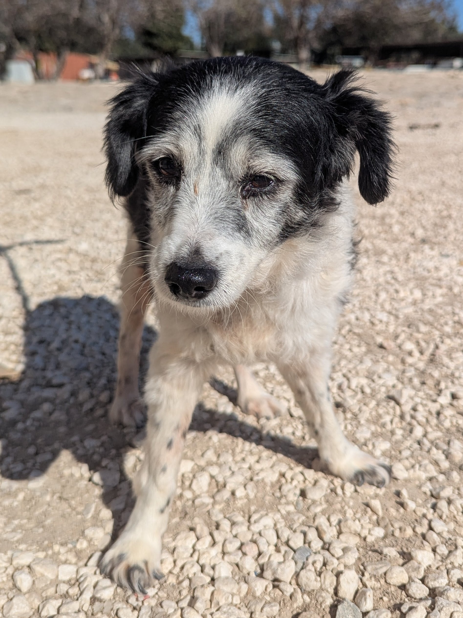 Small-sized senior female, black and white. Very sweet and affectionate girl