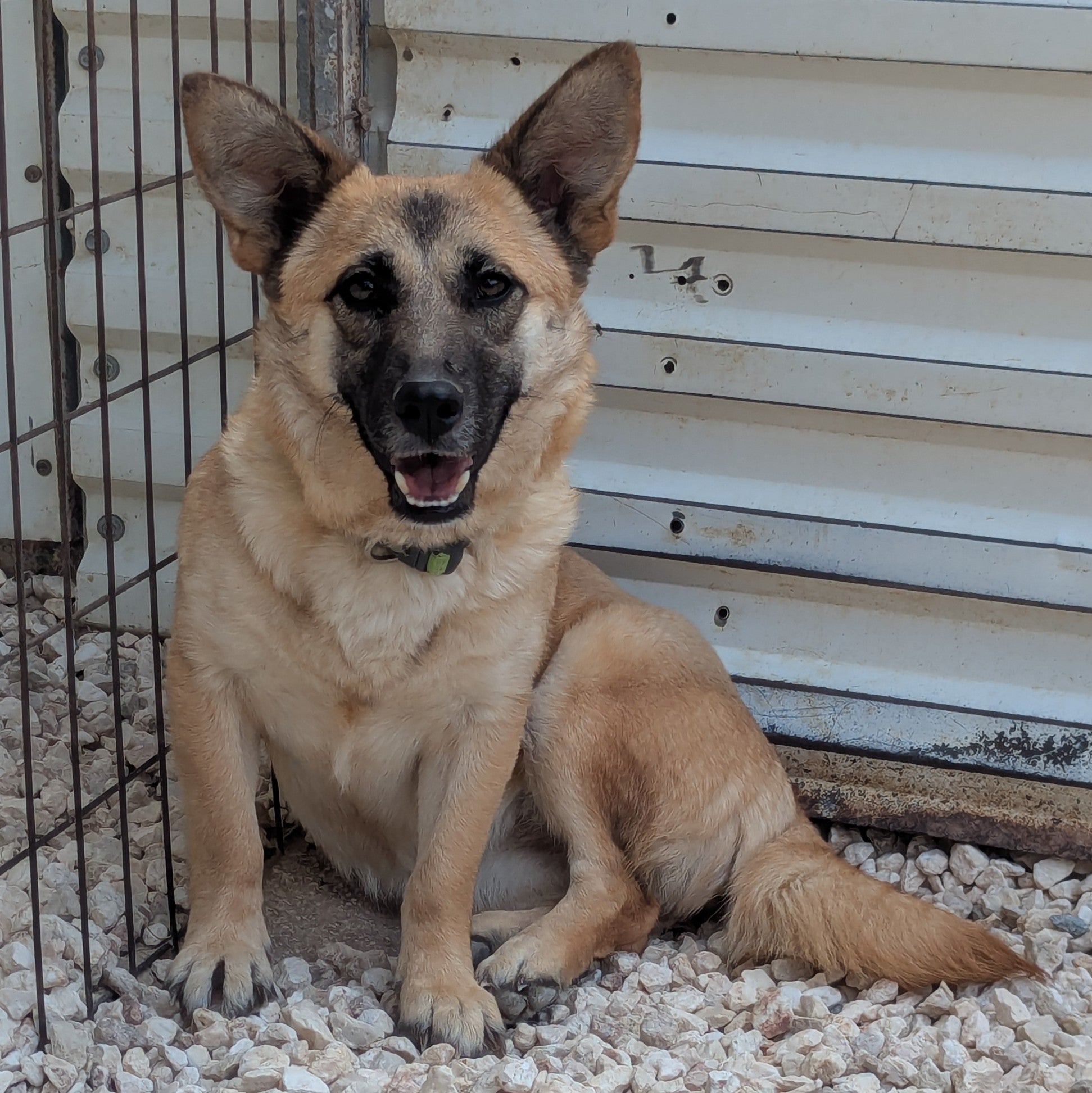 Небольшая коротколапая девочка палевого окраса с черной маской на морде. Осторожная, недоверчивая. Мамочка троих щенков, из которых выжил только один