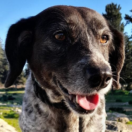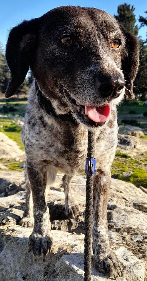 Среднего размера девочка охотничей породы, белого с черным окраса. Lovely older girl, very pretty with soft coat. Friendly and good on lead. Chases cats.