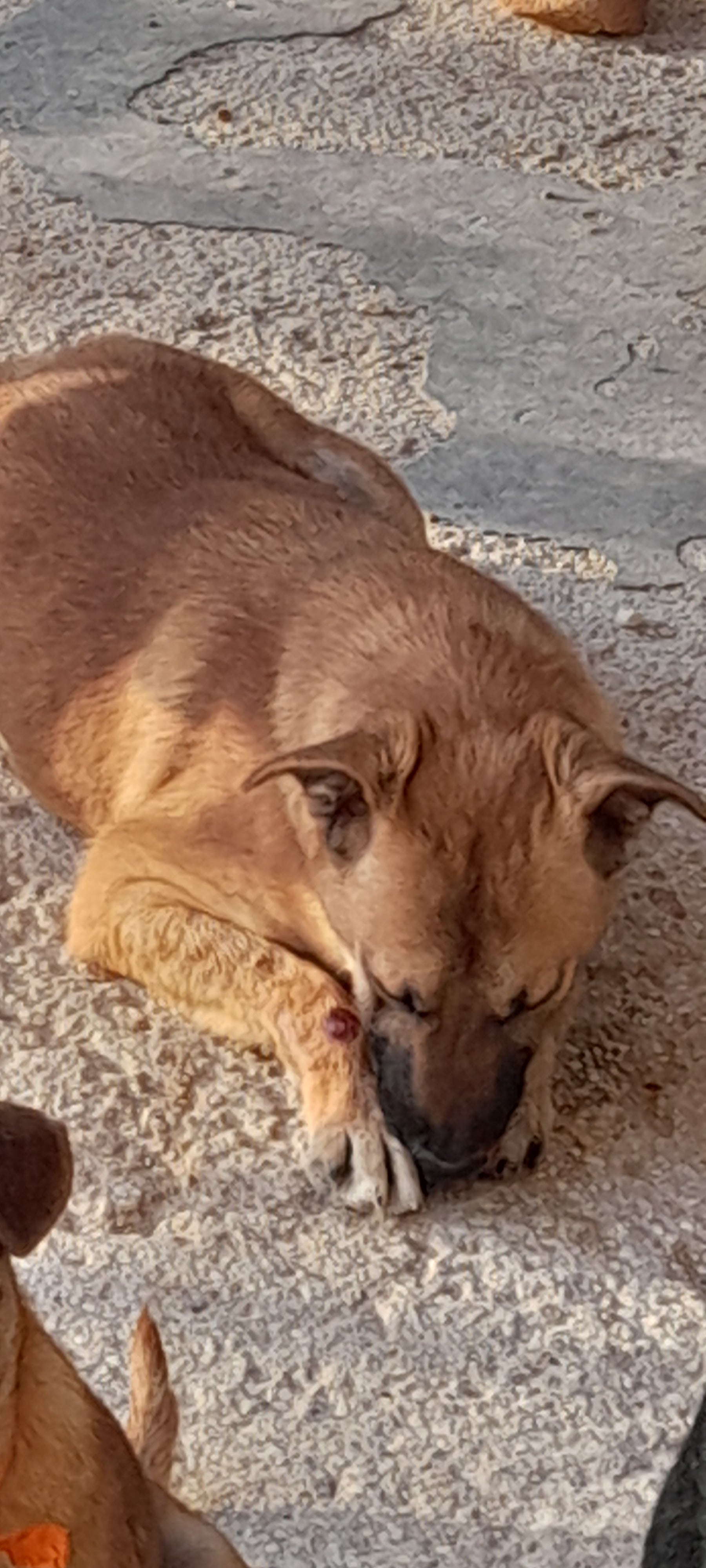 Lovely young boy, app. 1 year - came as puppy in summer 2024. Wine red collar. Skin problems in April 2025