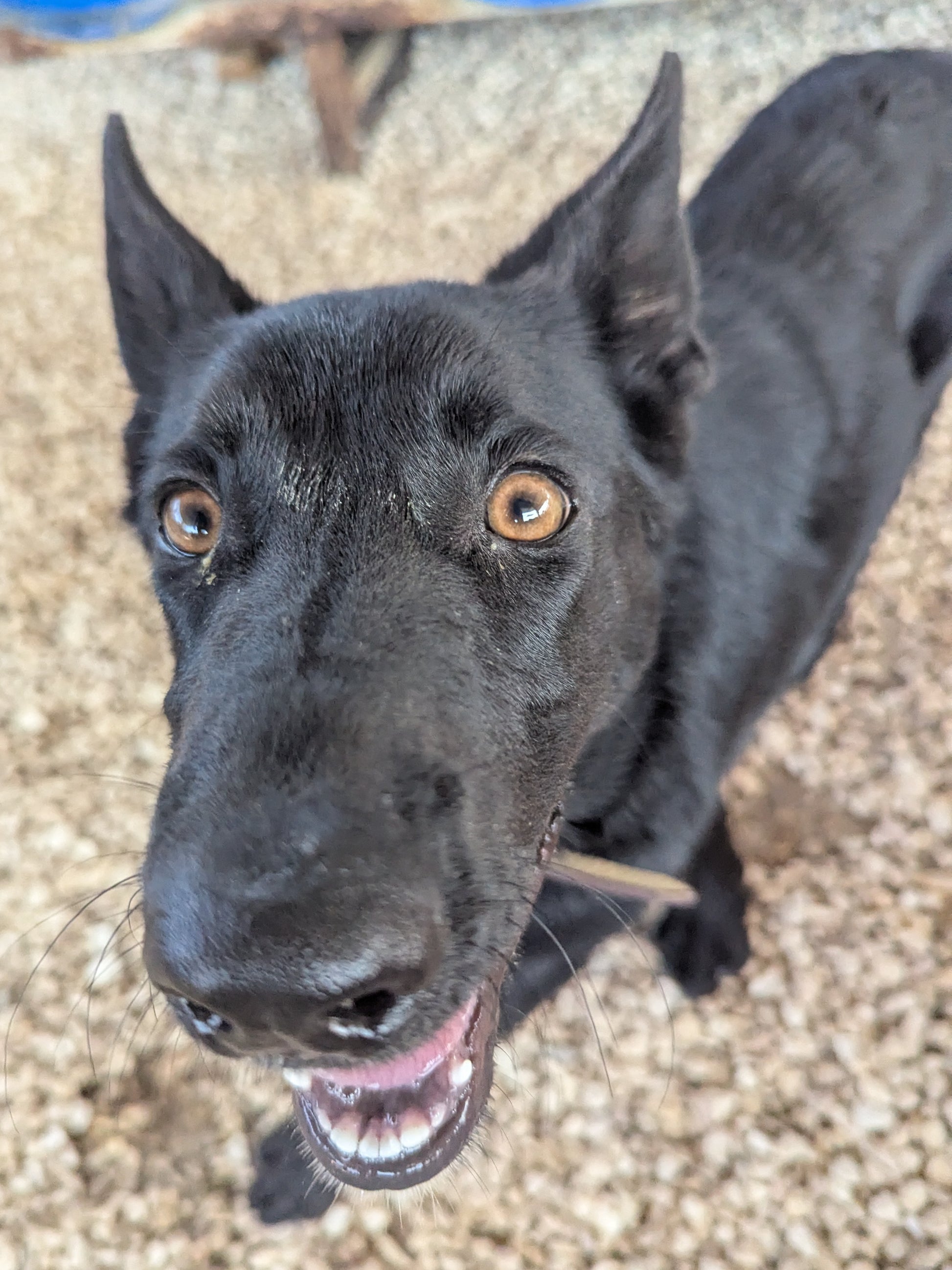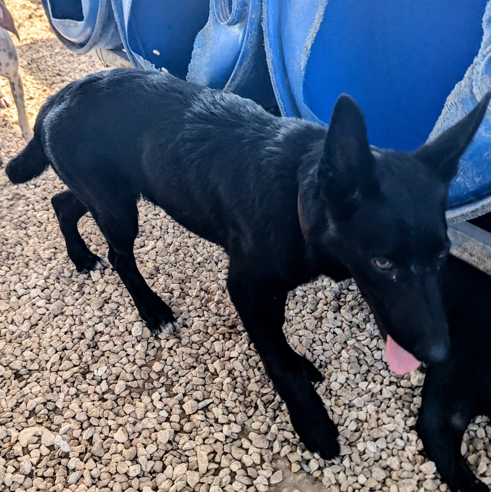 Young shepherd puppy female, total black like carbon. Beautiful shape and coat. Friendly, affectionate. Rescued in Cyprus. Ready for adoption