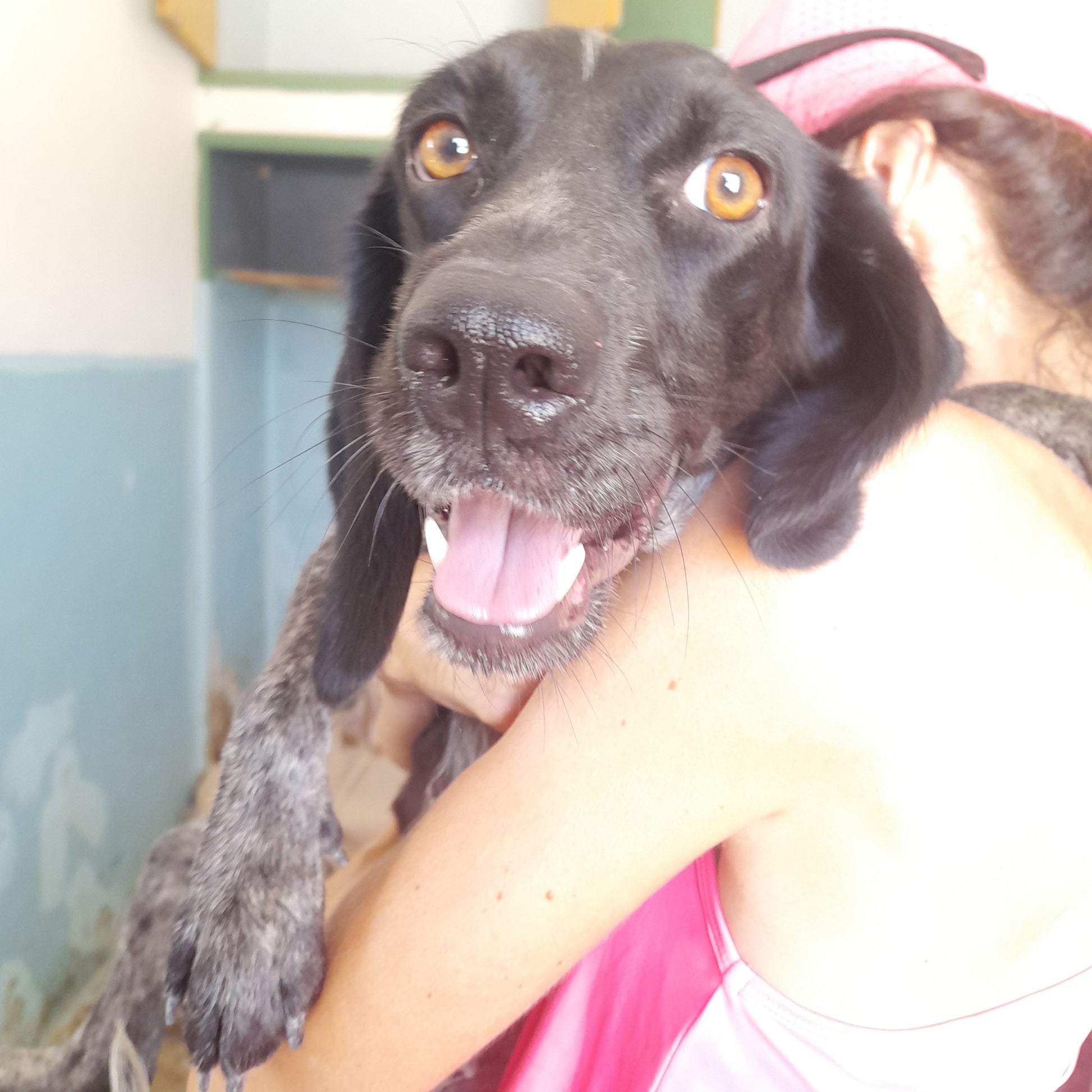 Very timid but beautiful and kind girl, black with grey hunting dog.