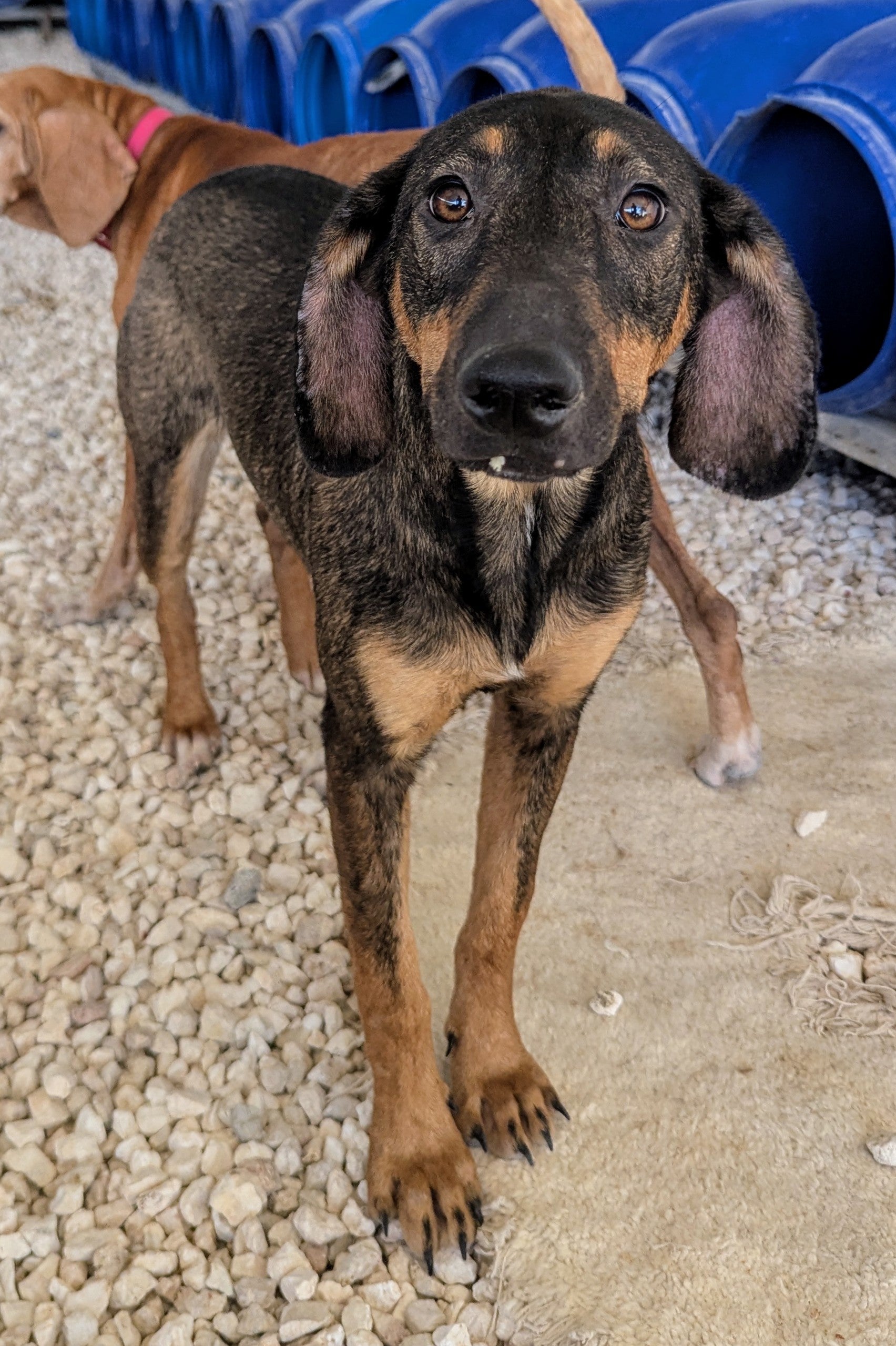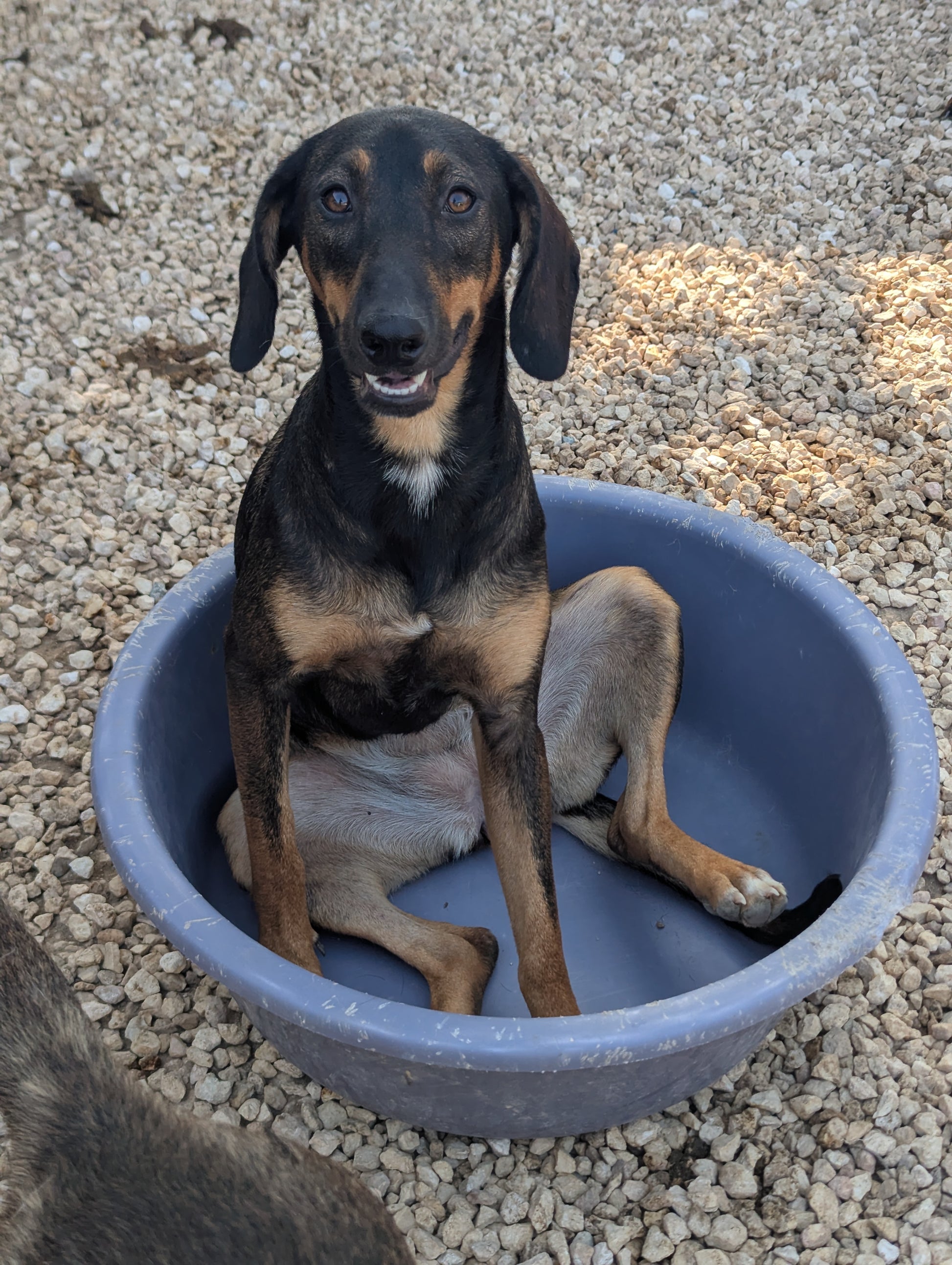 Среднего размера молодая девочка, черного с коричневым окраса. Пугливая