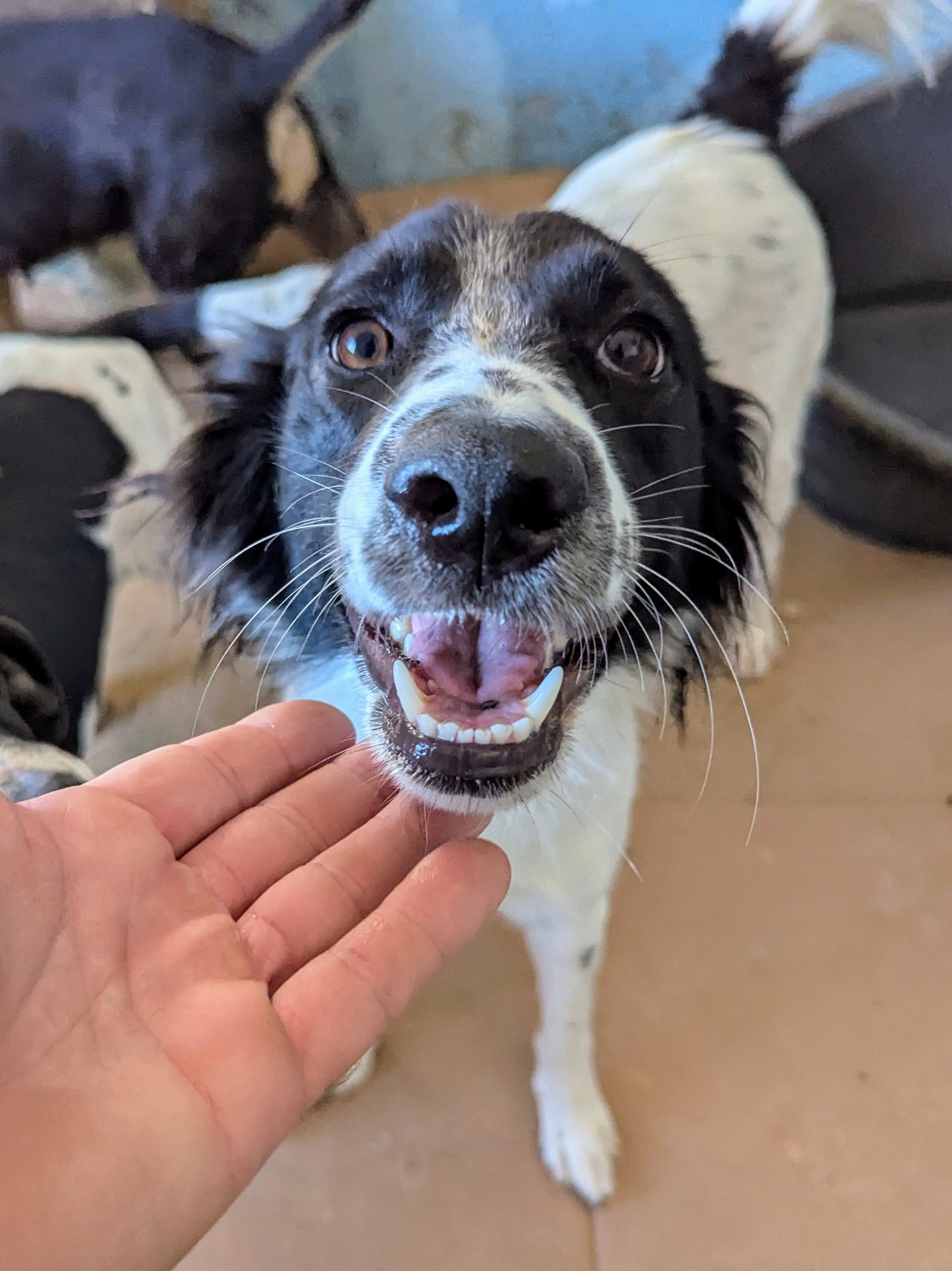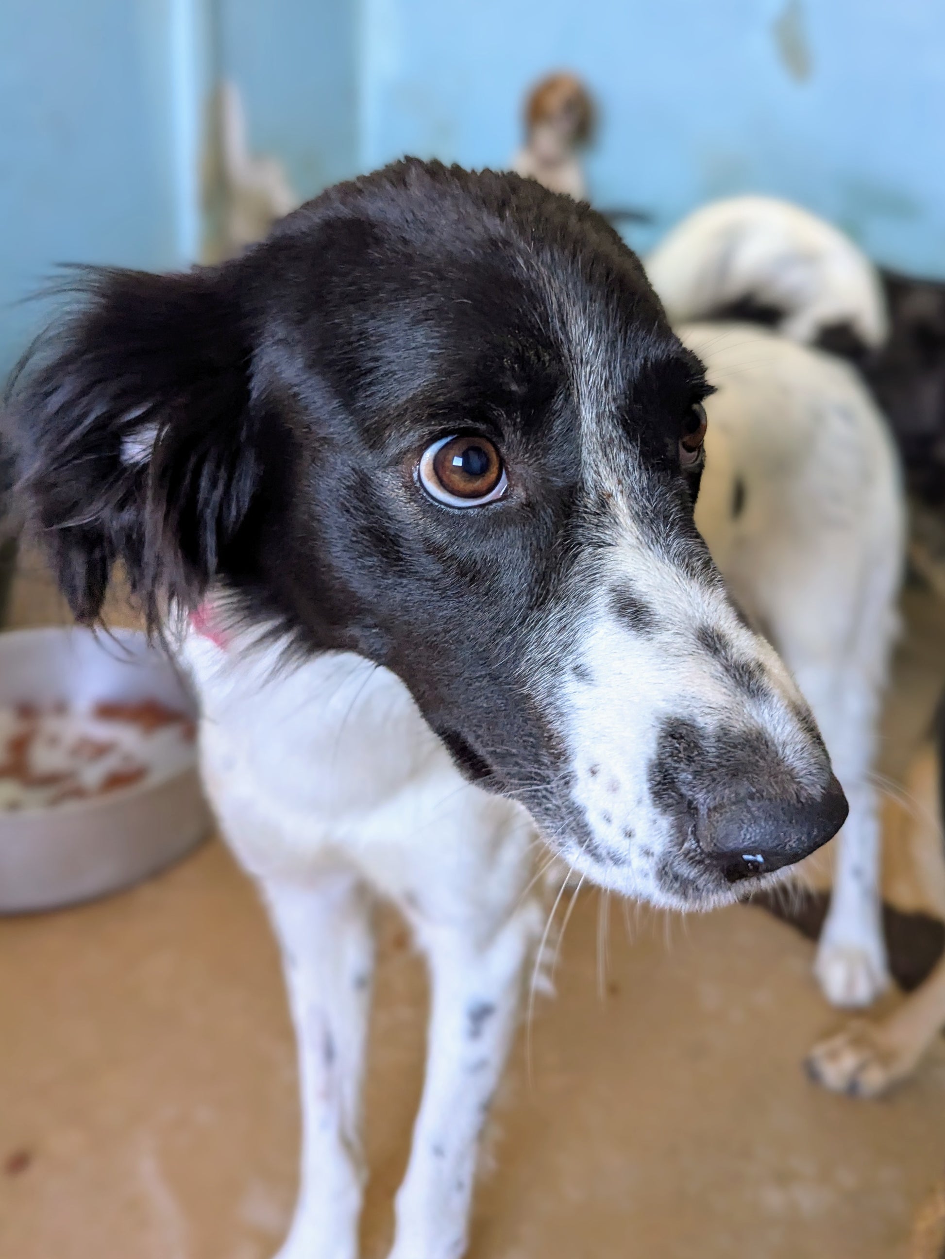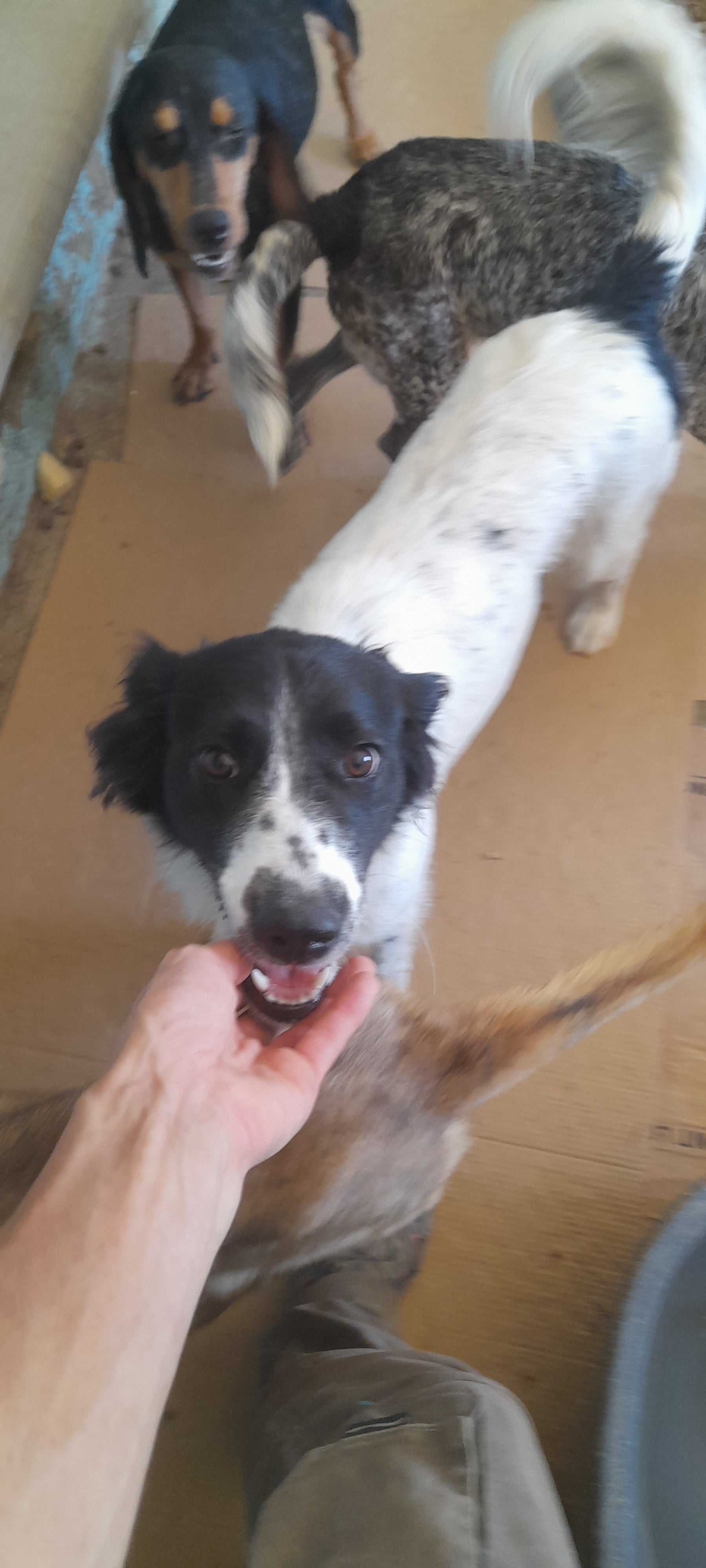 Very affectionate beautiful girl, Collie Cross possibly some Spaniel? Long hair, black and white, very well mannered and good natured.