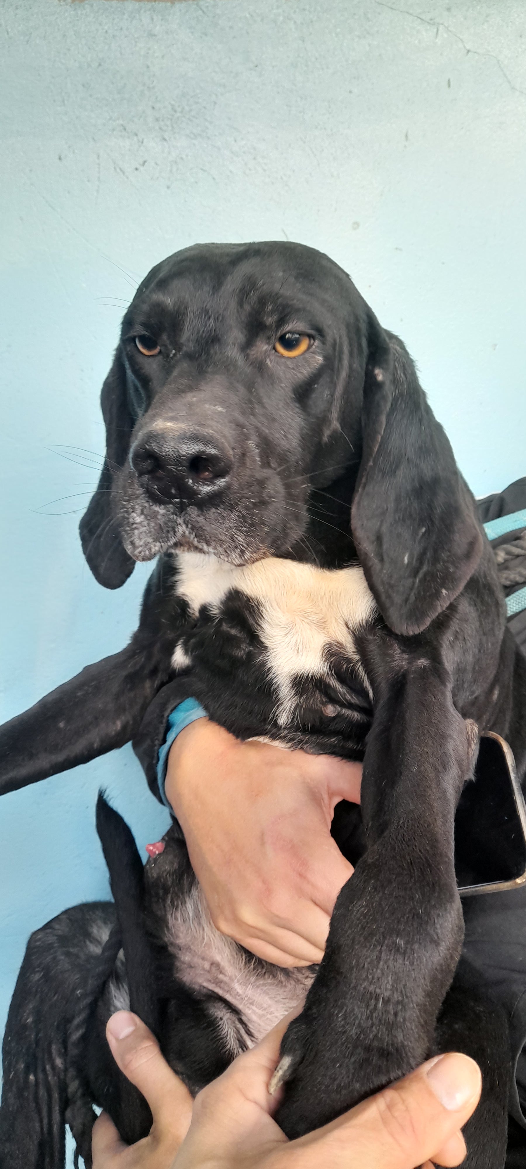 Active, friendly black boy with white chest, very similar in look and colours to Gregory. Likes to go to the playground, good with other dogs and people.