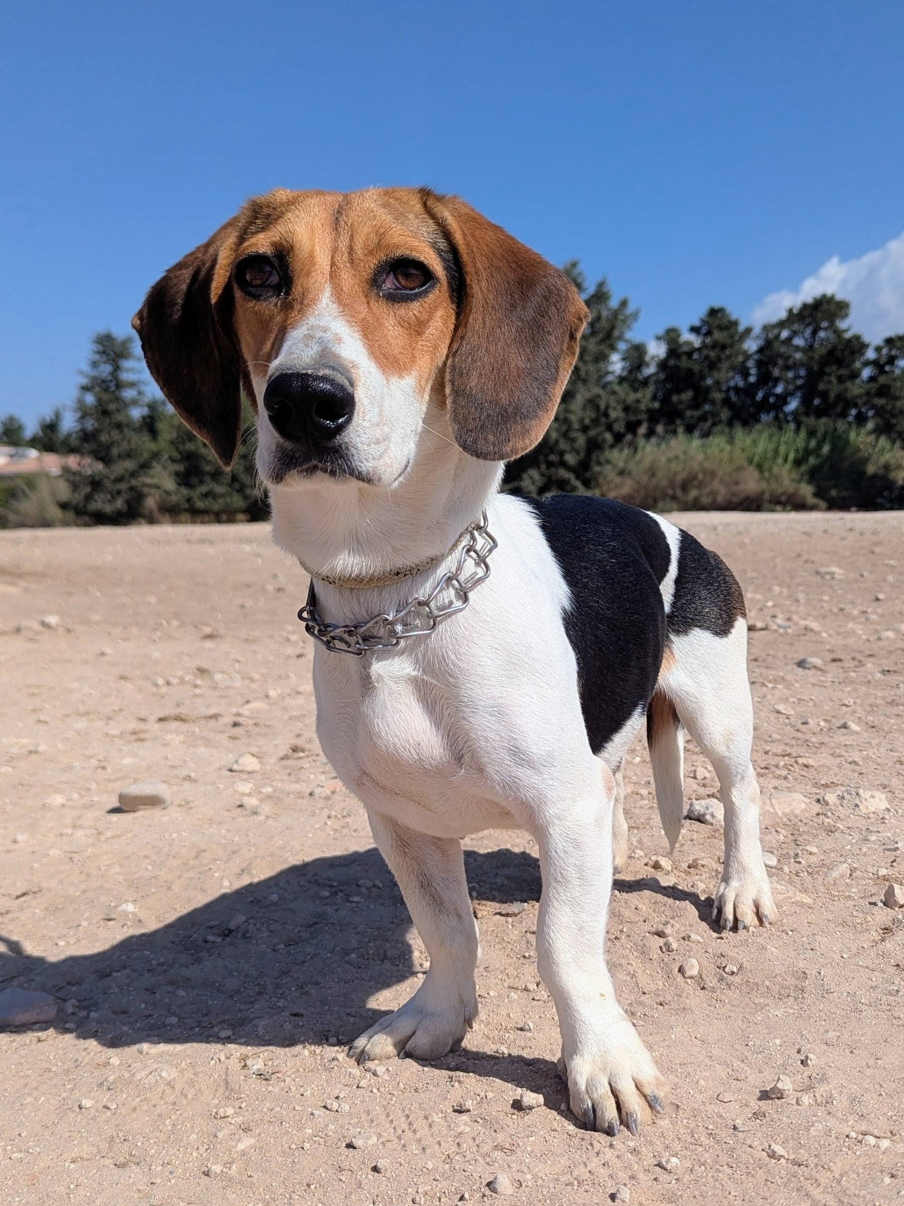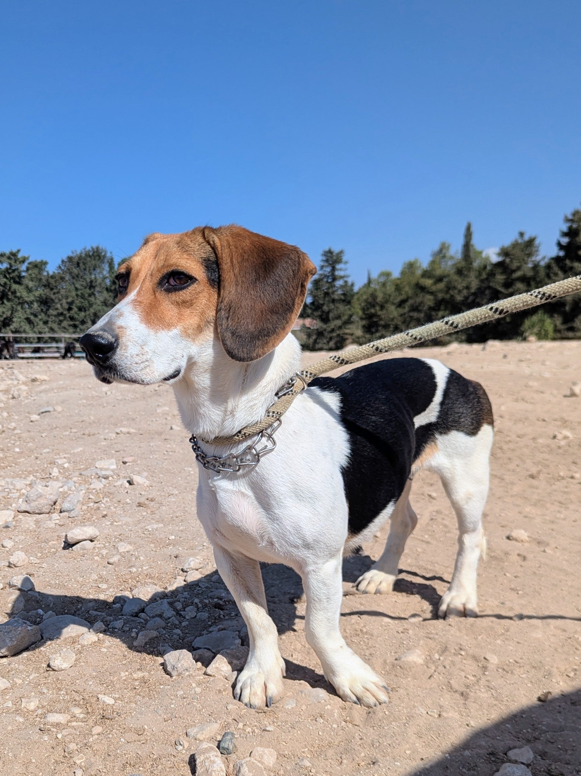 Came in to Animal Rescue Cyprus together with Blue (now is adopted) on 25.08.2025. Owner cannot keep her anymore. Walks good on lead. Cats aren't her best friends, tryes to chase them