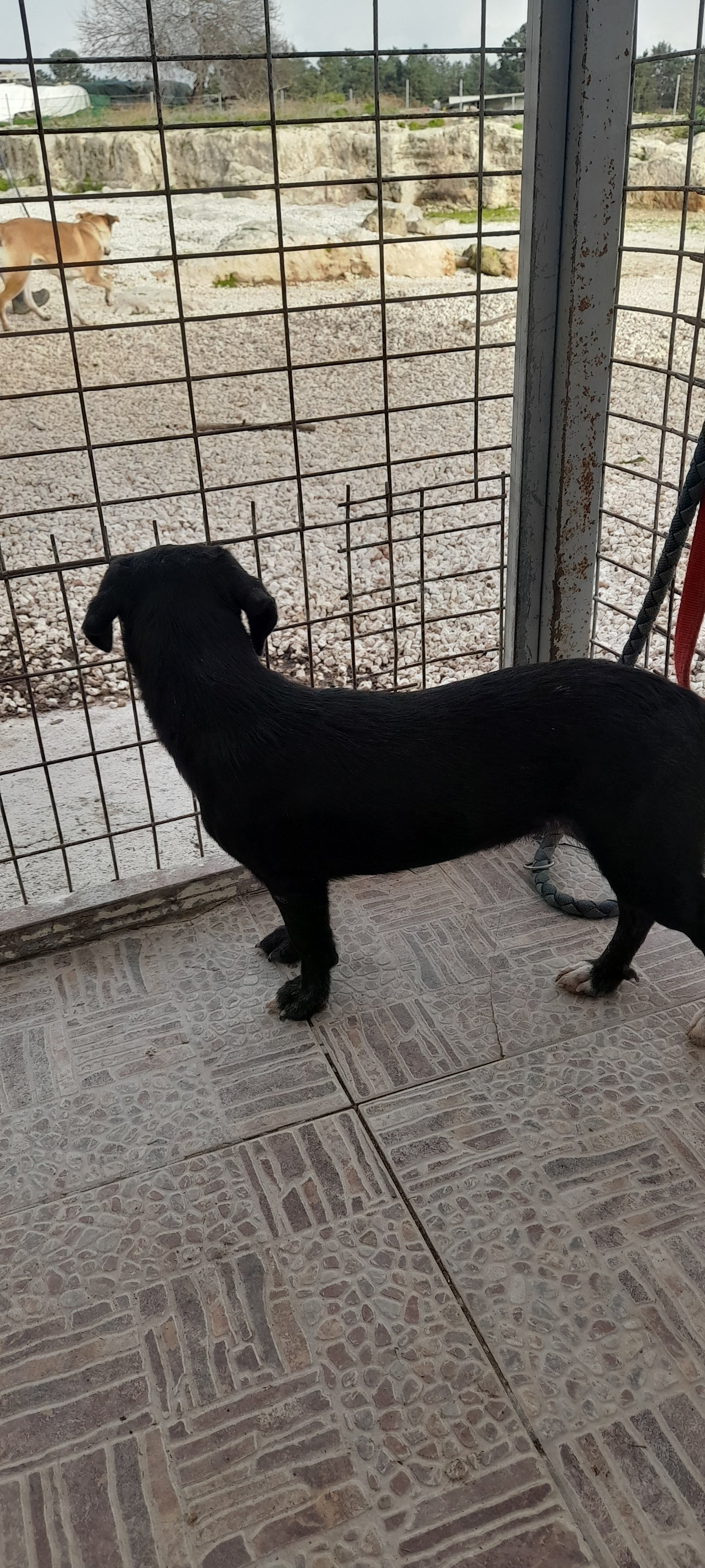 Possibly a sister of boy Jacky from puppy litter that came in in fall 2025. Not to be confused with similar girl in puppy pen wearing a yellow colour (that one is bullying other dogs)