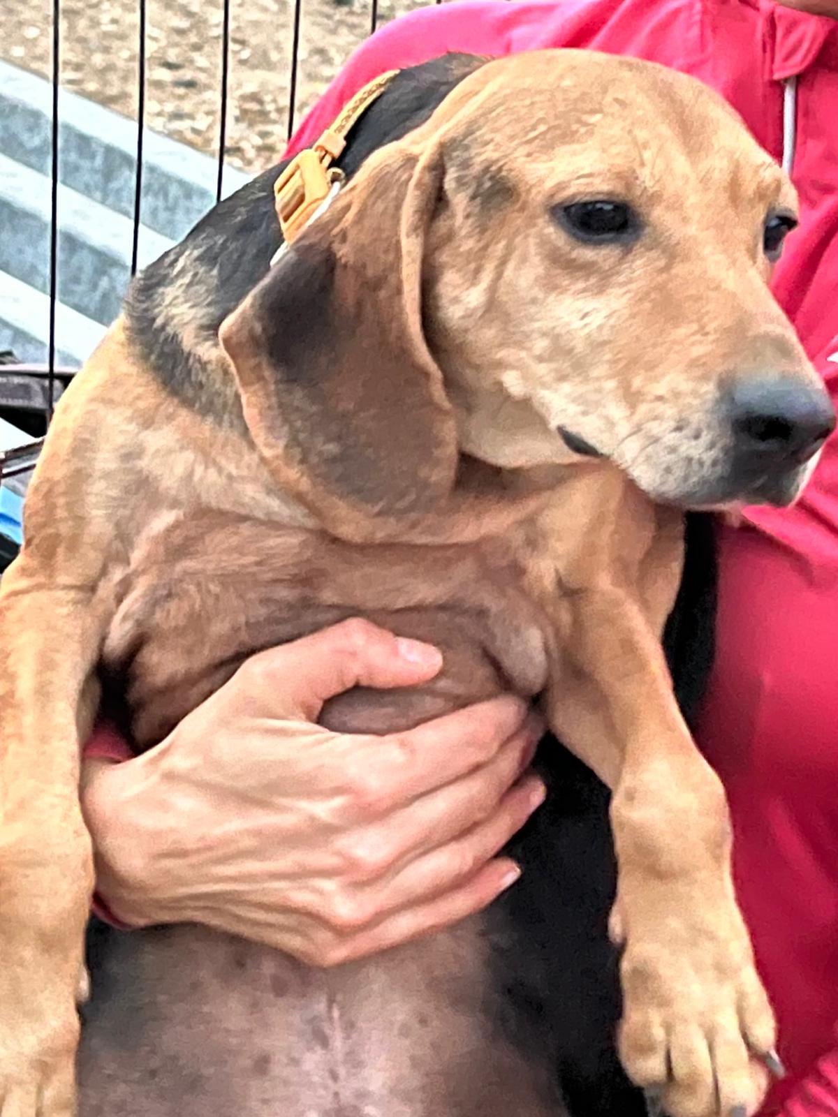 Hunter Cross, very kind, curious and a bit overweight. Well behaved, good on lead, likes to play