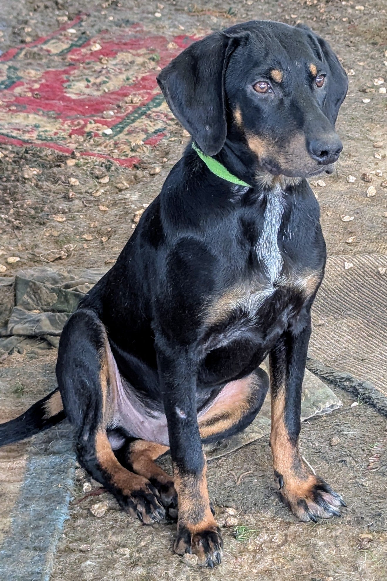 Среднего размера мальчик. Окрас черный с коричневым, белой проседью на груди и черными пальцами