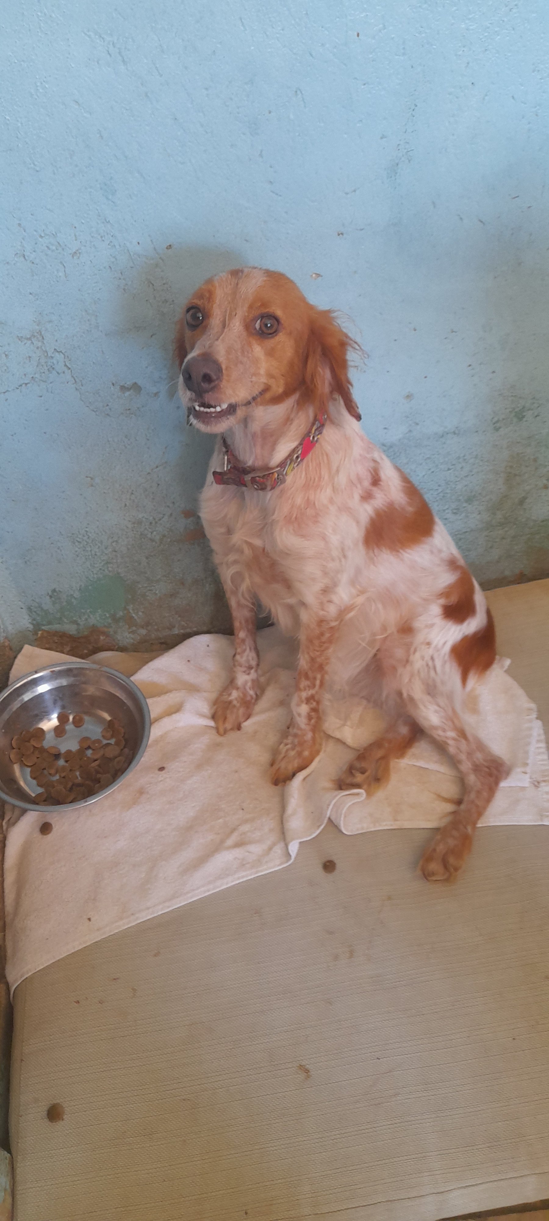 Beautiful natured Espanol Breton girl, very pretty ginger white freckles, long hair. Timid and scared of other dogs. Has Leishmania/Ehrlihia