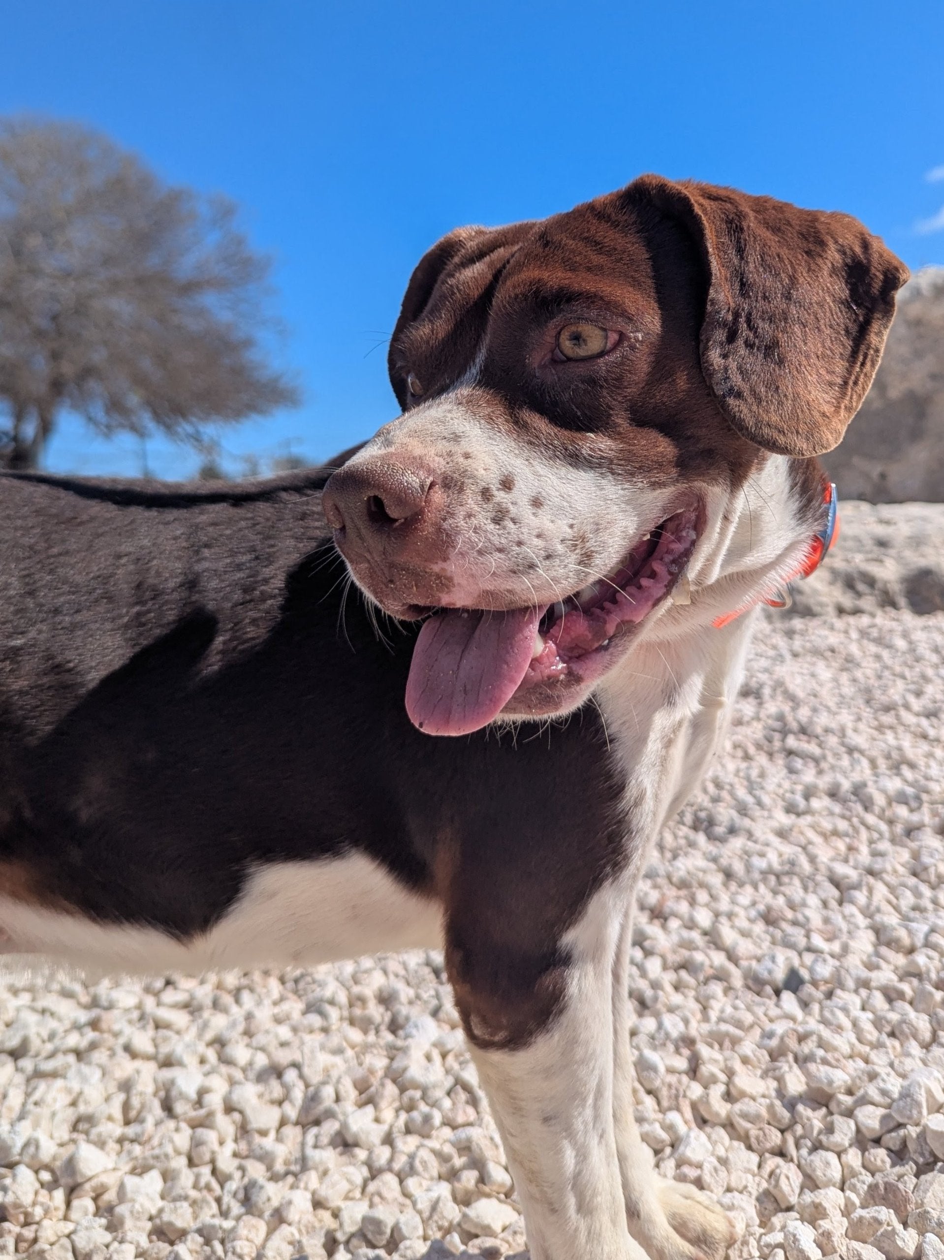 Энергичный пёс небольшого к среднему размера. Красивый окрас, коричневый с белым. Широко раскрытые глаза янтарного цвета. Активный