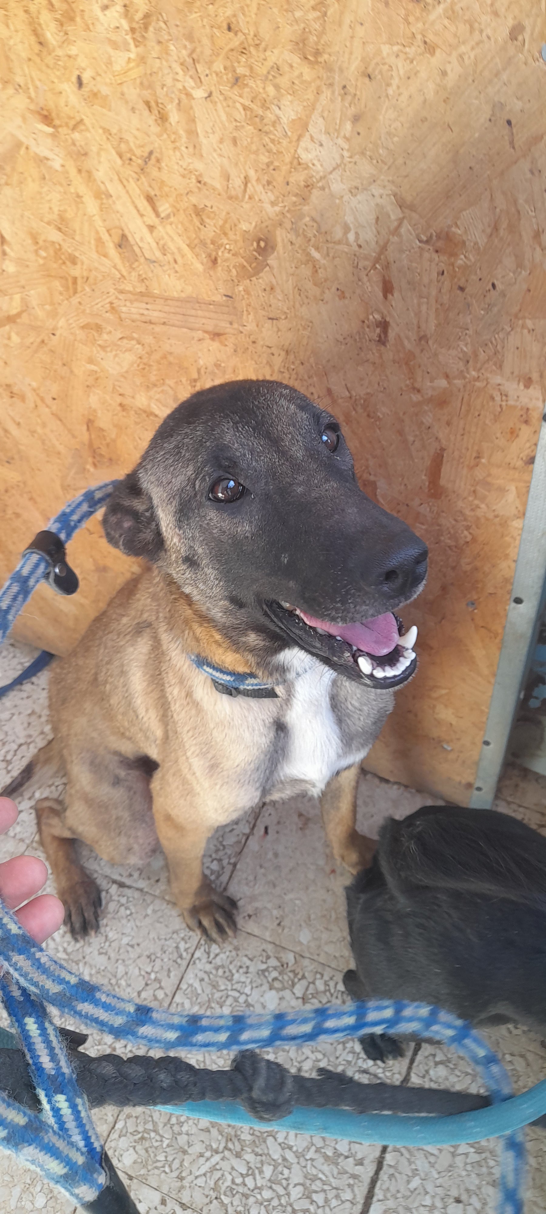 Medium-sized Malinois Cross girl, very smart and people oriented.