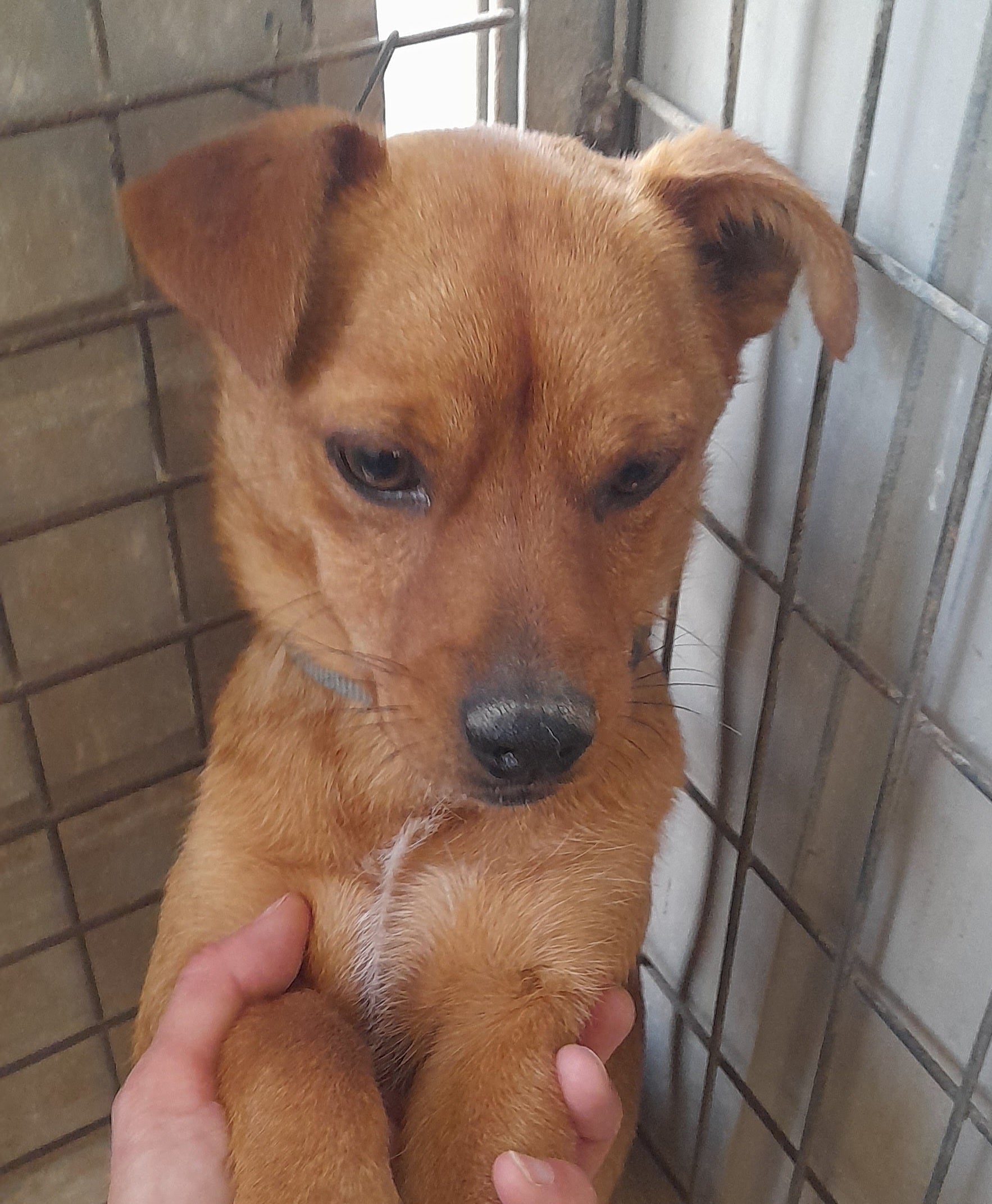Very small ginger boy, lovely nature, good on lead. Wears green collar now