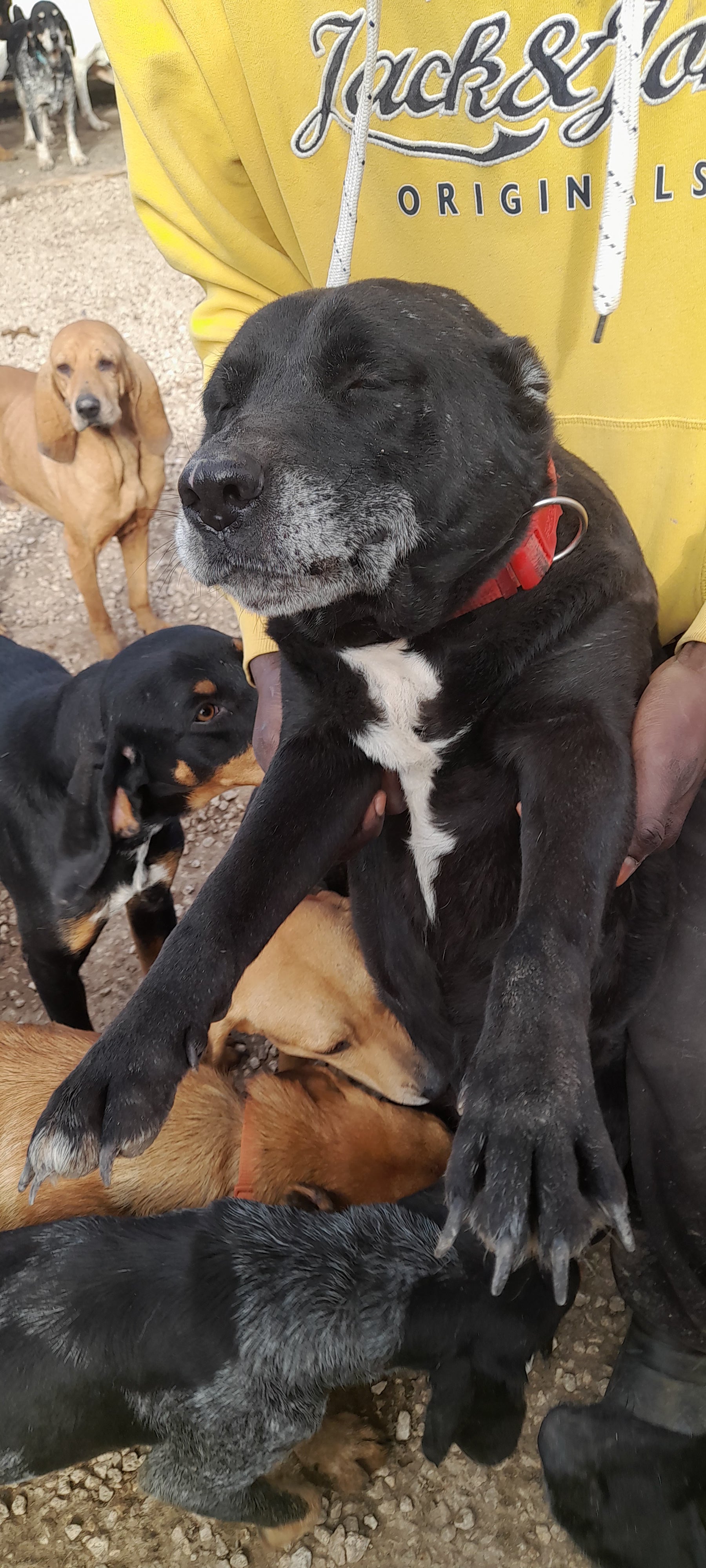 Very active senior dog, overweight but loves to play ball for hours. Left ear missing, huge handsome smile. Long time resident with lots of love to give.