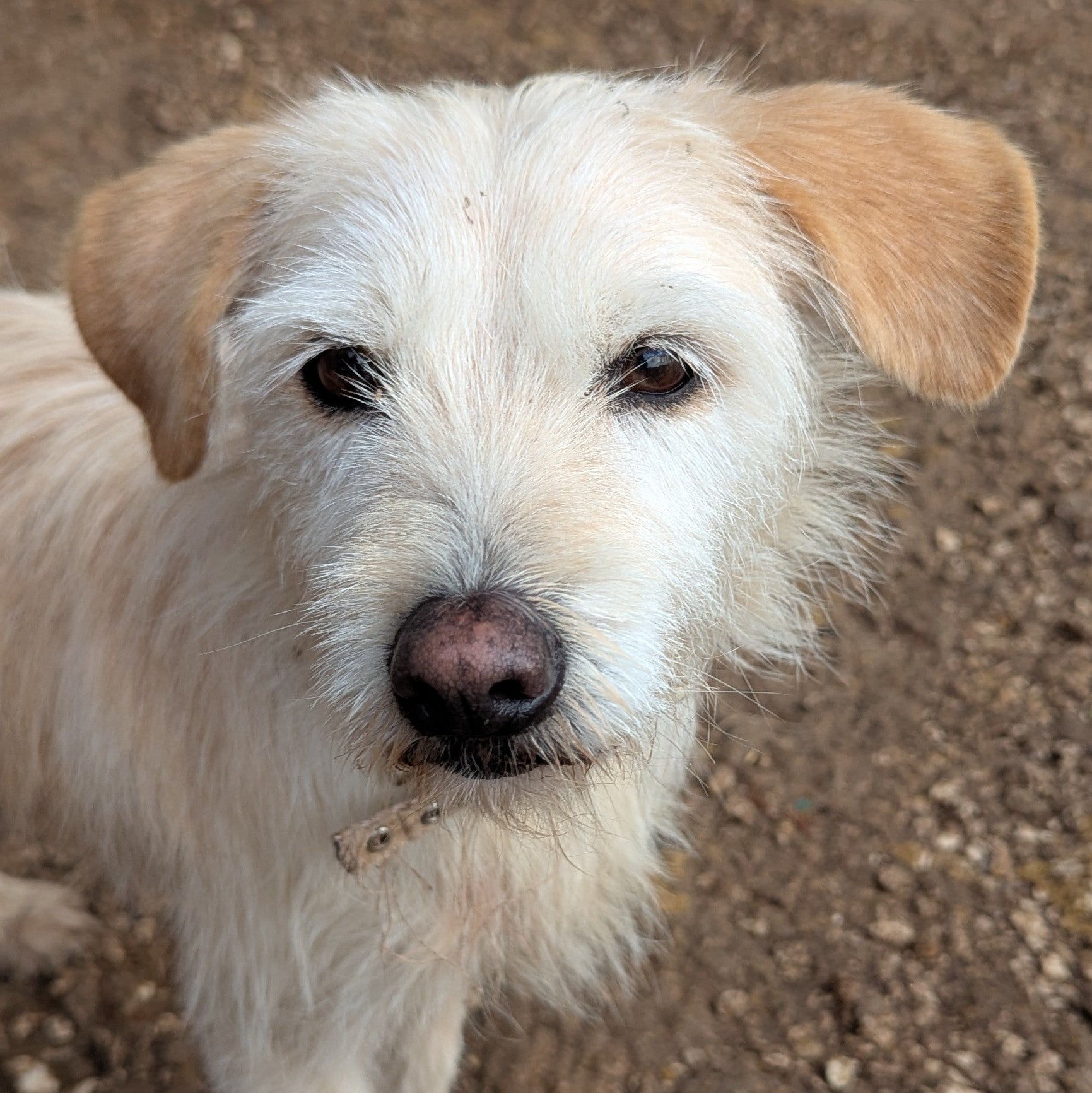 Девочка, типа терьера, небольшого роста и среднего возраста, палевого окраса, жесткошерстная. Держится отстраненно от других собак редко с ними взаимодействуя