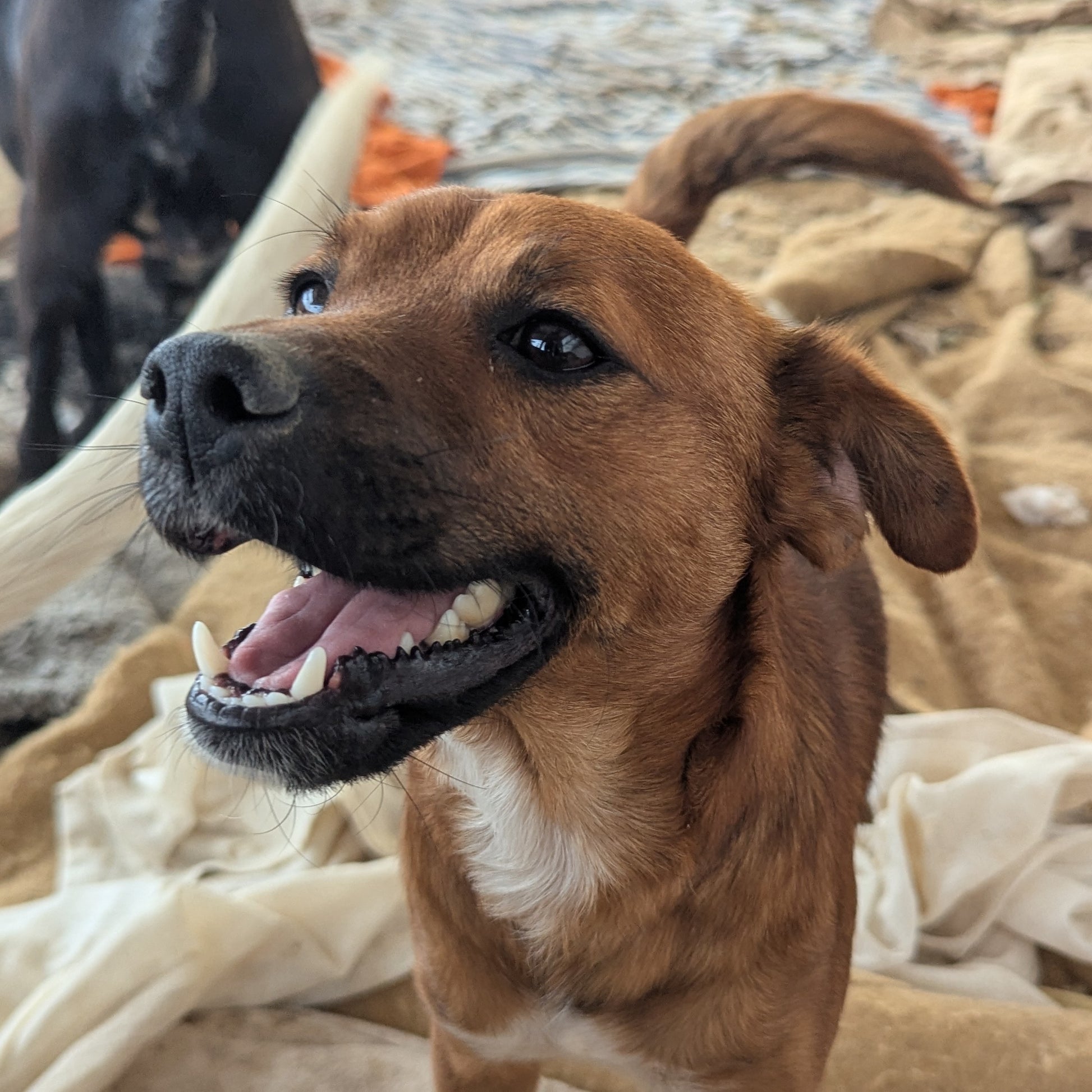 Маленького размера мальчик, рыжего окраса с черной маской
