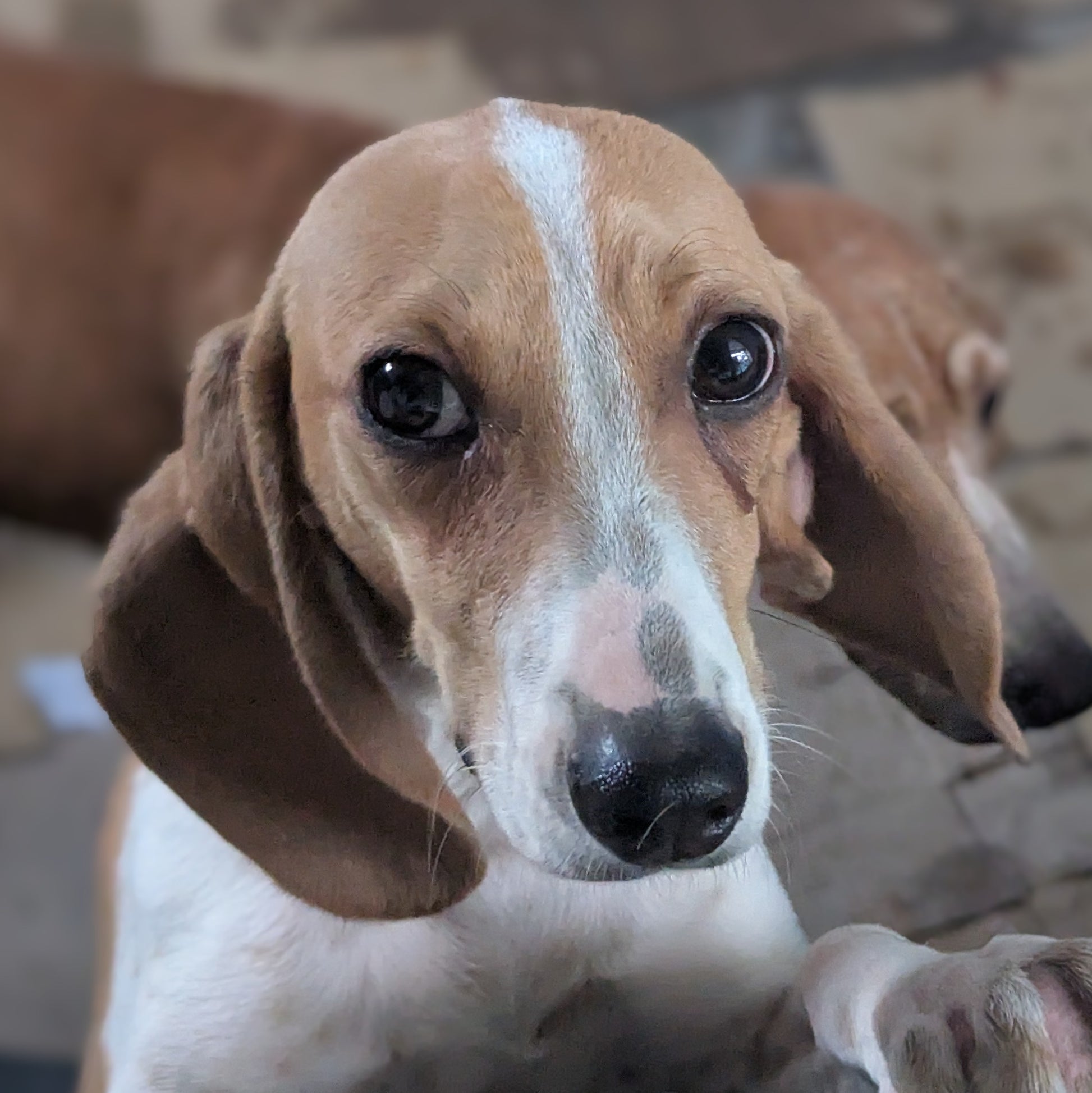 Небольшого размера девочка. Окрас белый с коричневым подпалом