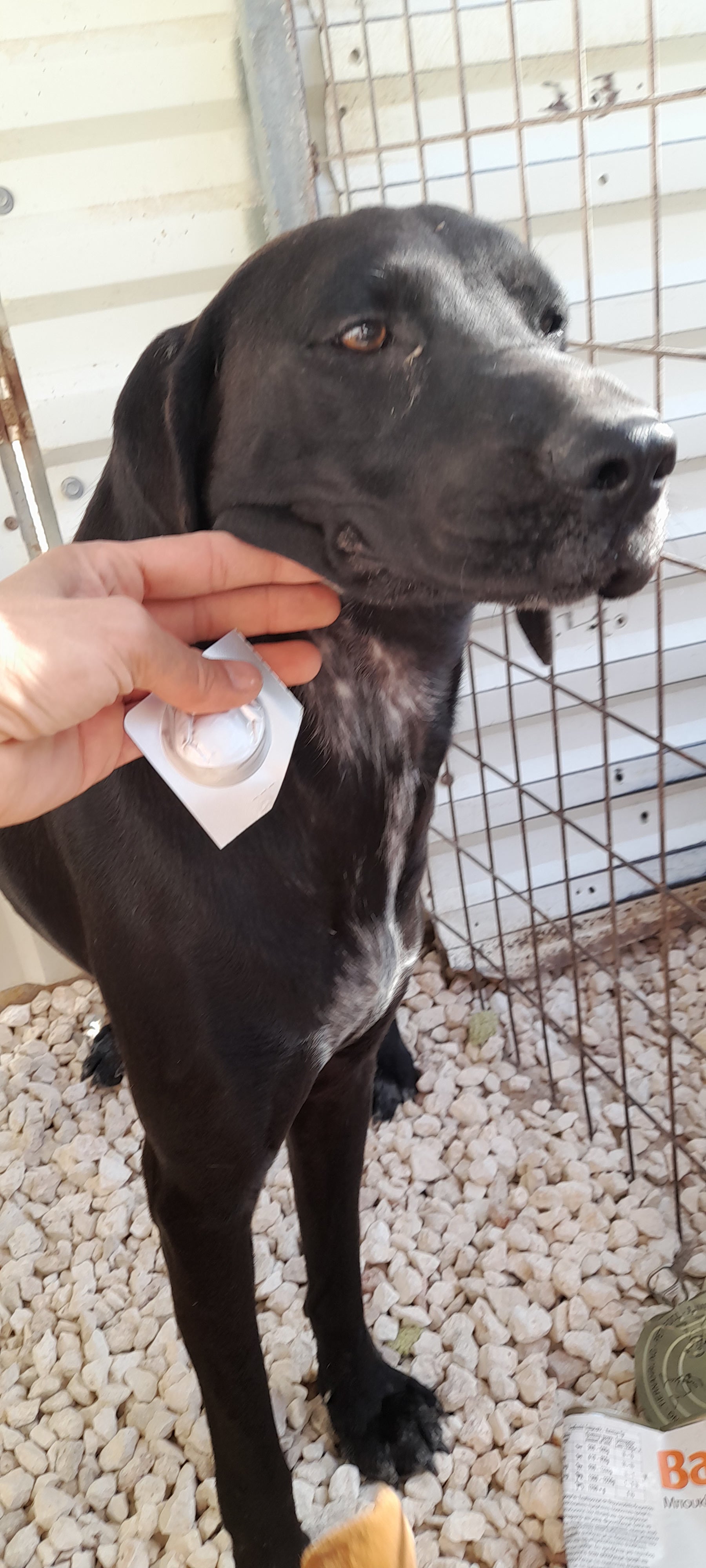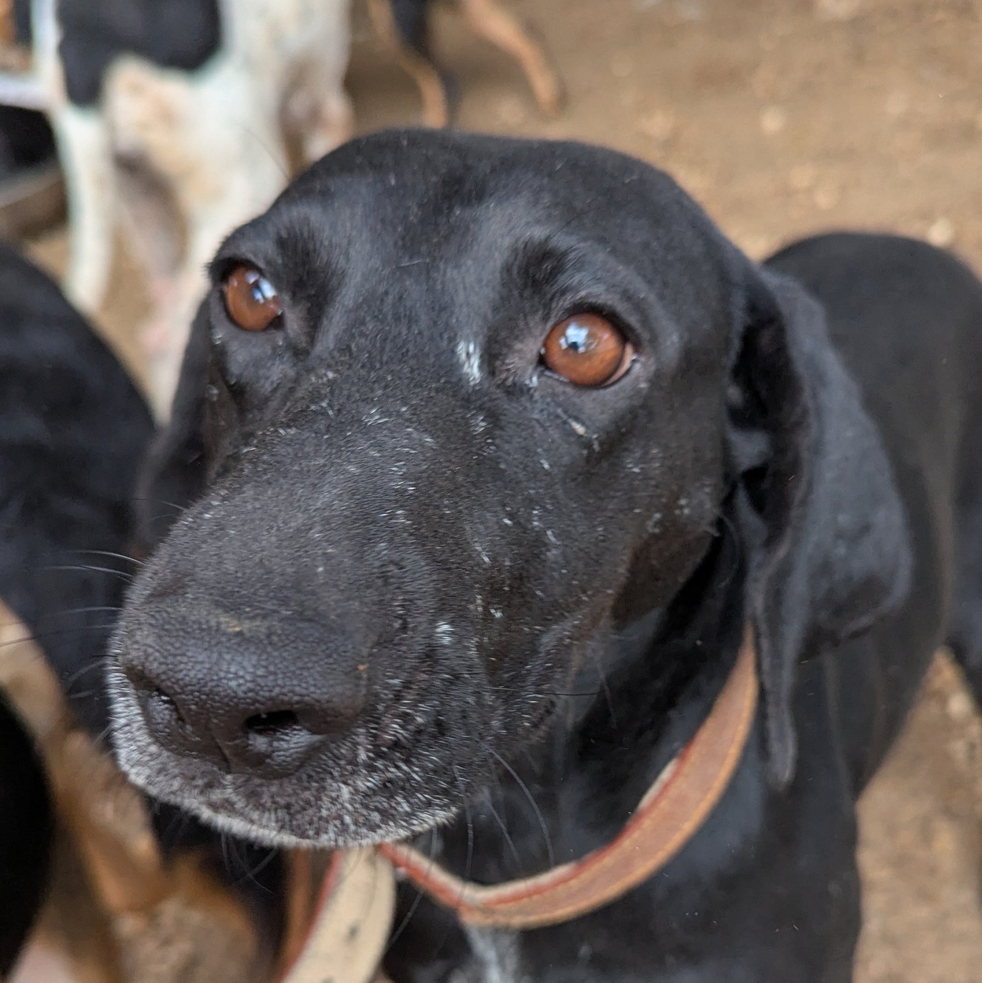 Меньше среднего размера девочка, черного окраса с россыпью мелких белых точек на морде. Поэтому Stella (звезда)