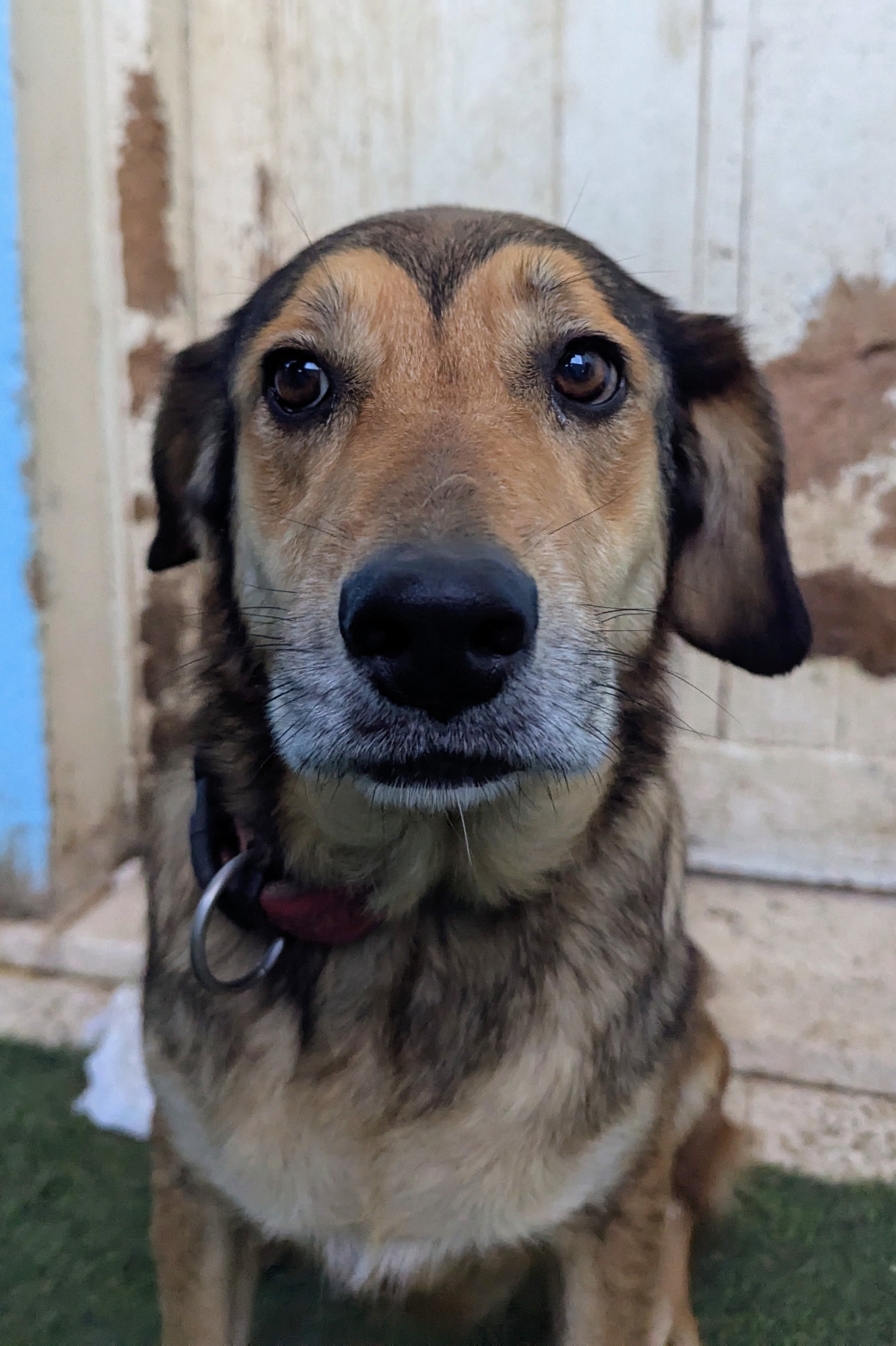 Крупного размера девочка, среднего возраста. Окрас рыжий с черным, длинношёрстный. Седая морда. Над глазами черная обводка. Пиарится в России