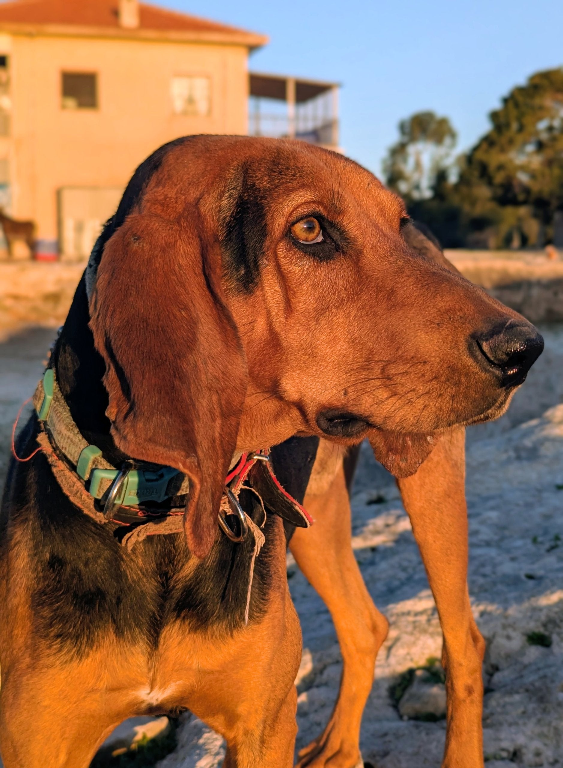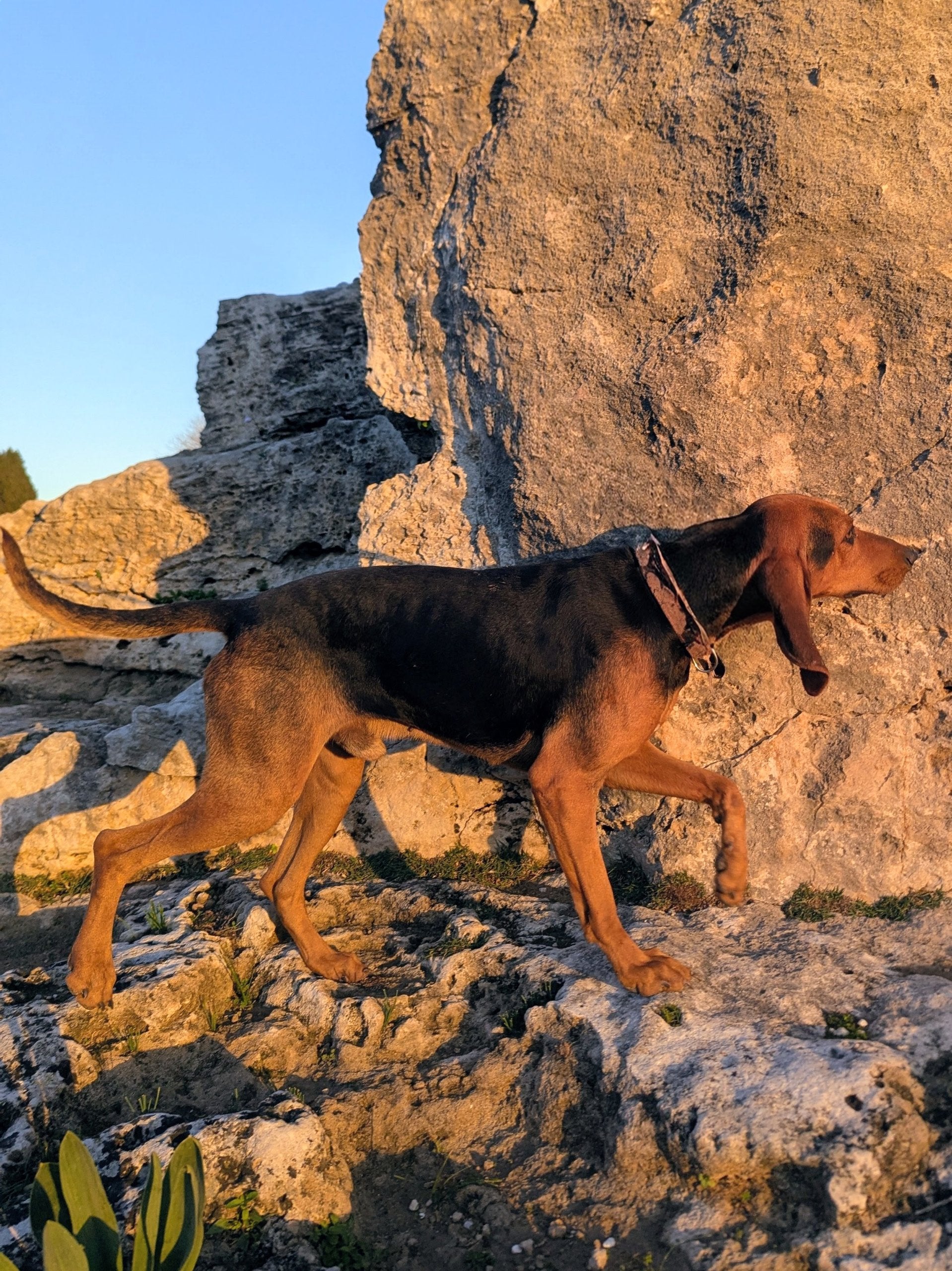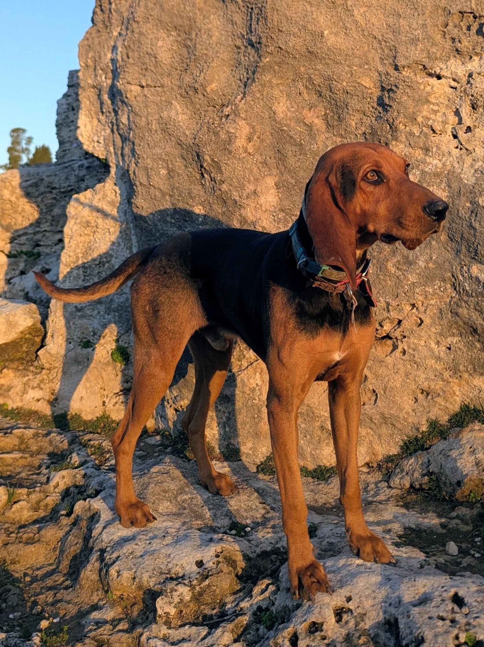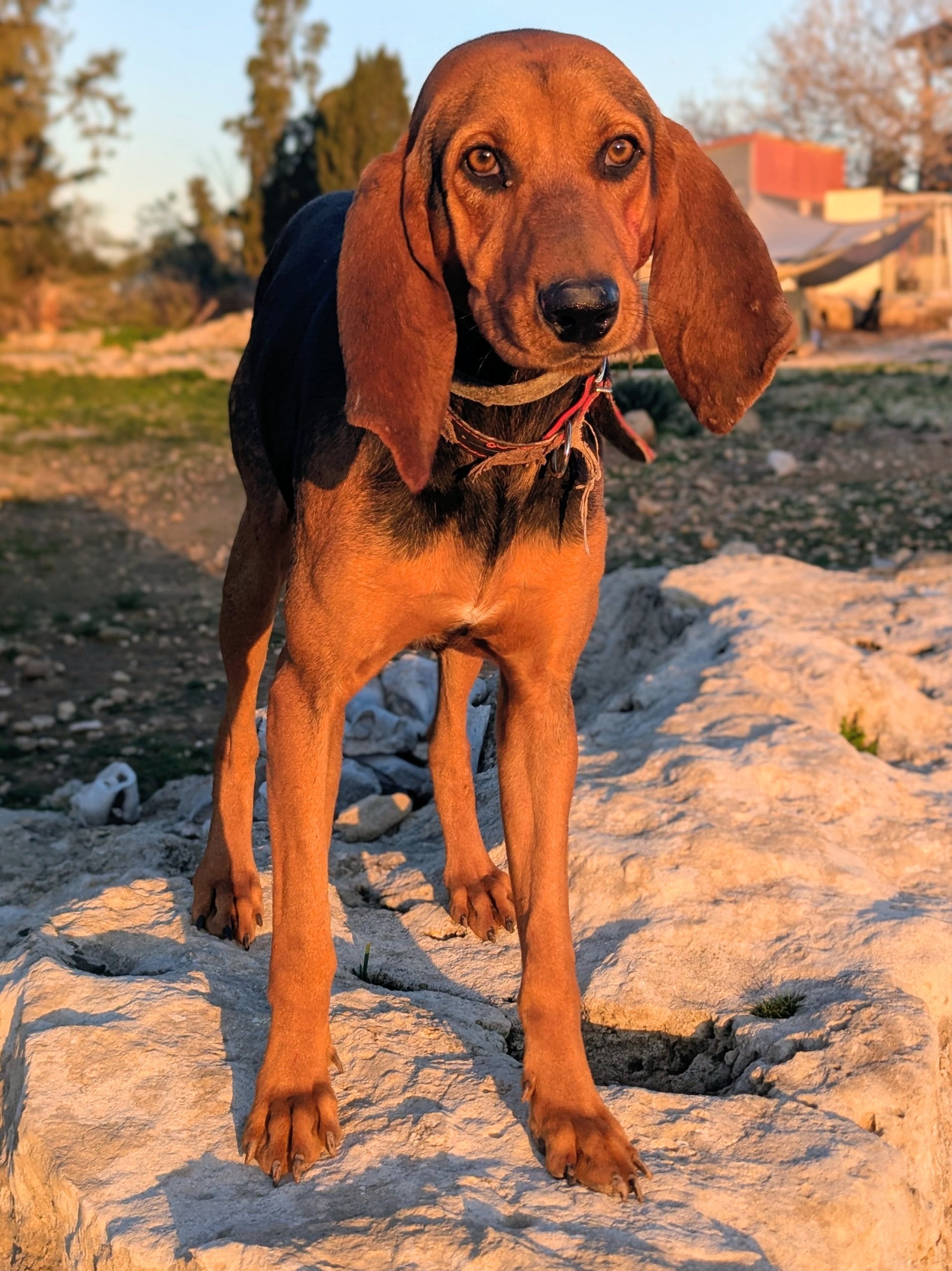 Среднего размера мальчик охотничей породы. Окрас черный с коричневым. Дружелюбный, спокойный