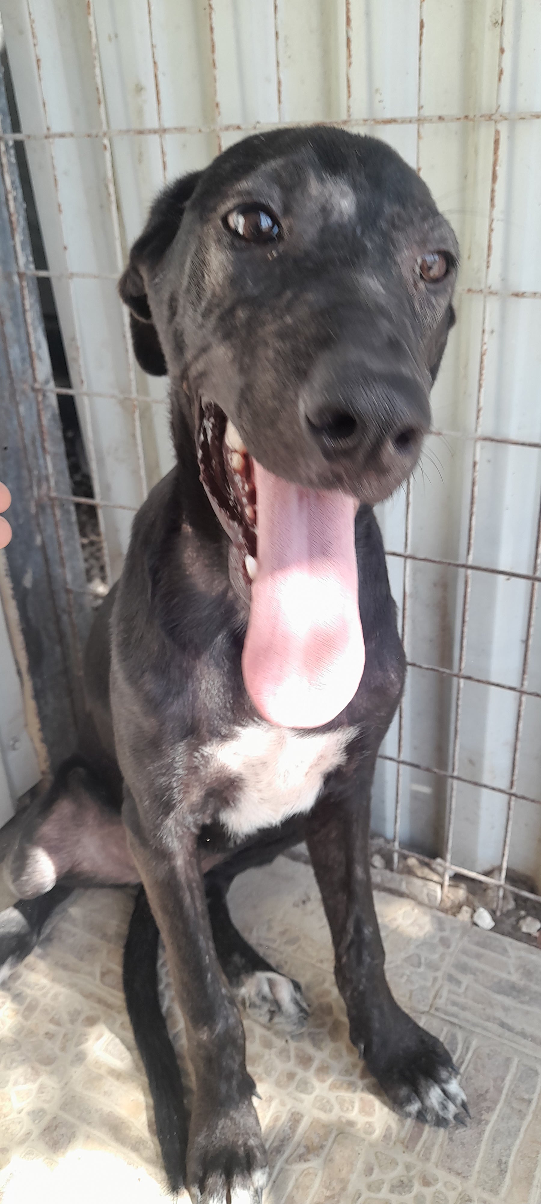 Black tall puppy girl with white chest.