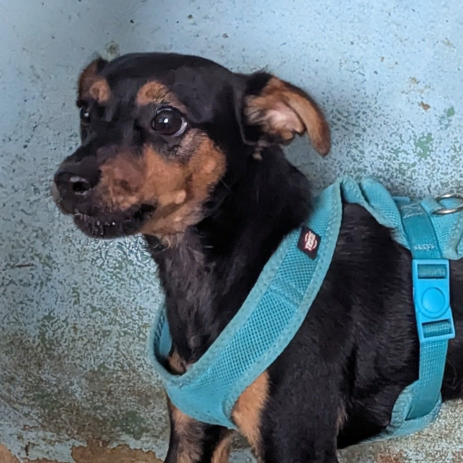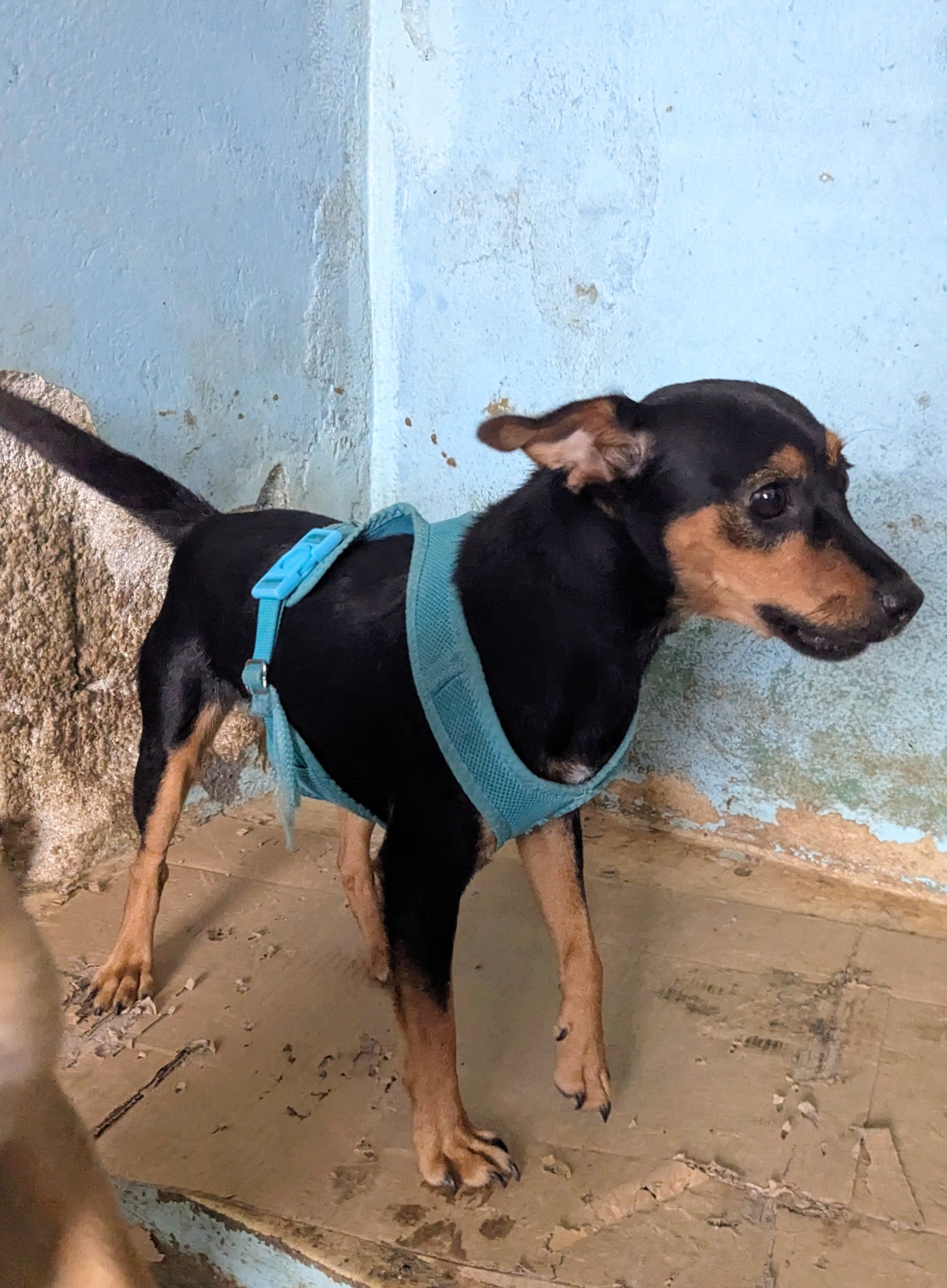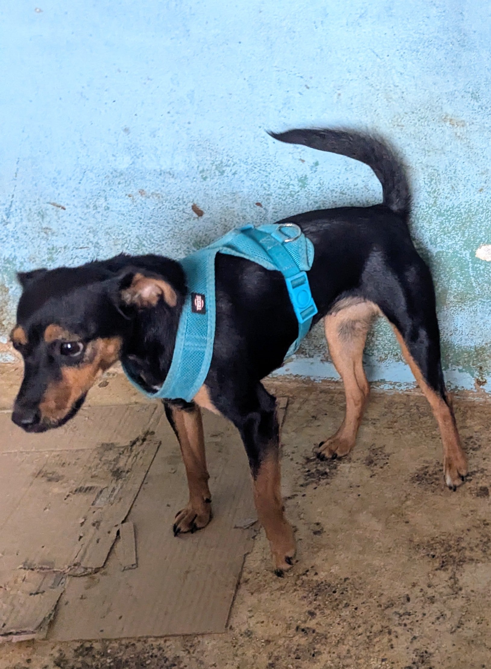 Came in to Animal Rescue Cyprus on 09.09.2025 together with two other dogs - Gerda and Marquise. Was wearing a blue harness on her
