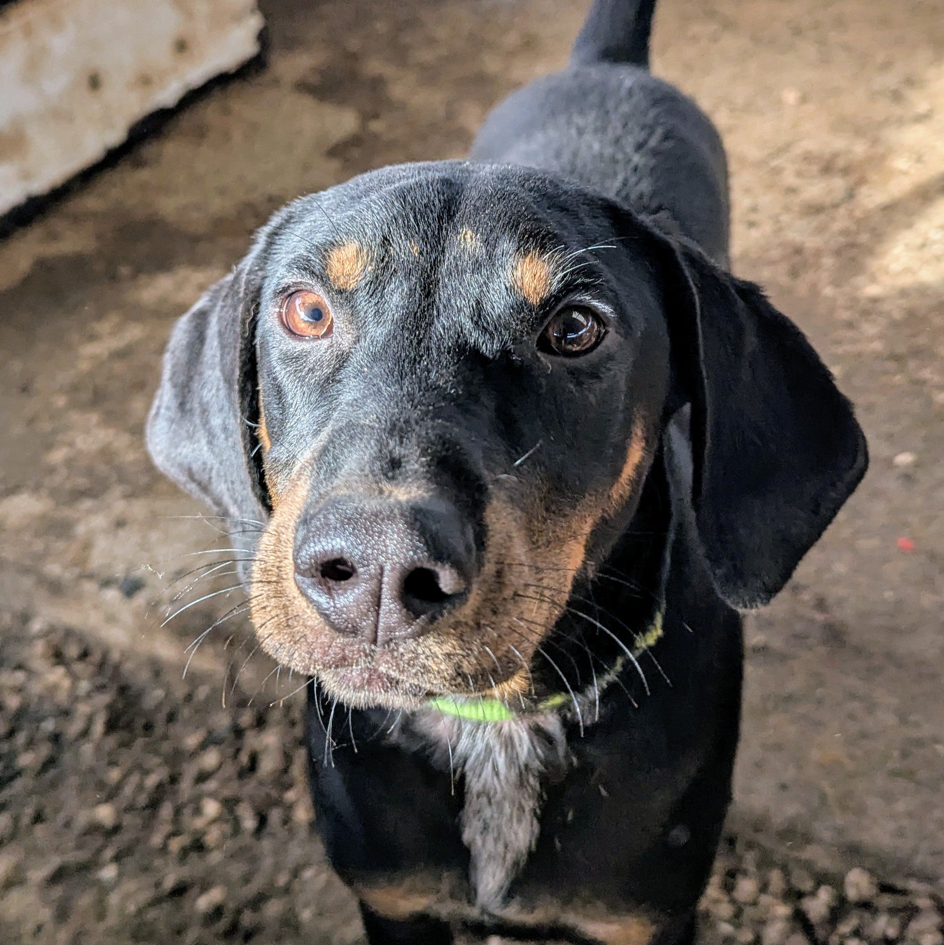 Среднего размера мальчик. Окрас черный с коричневым, белой проседью на груди и черными пальцами