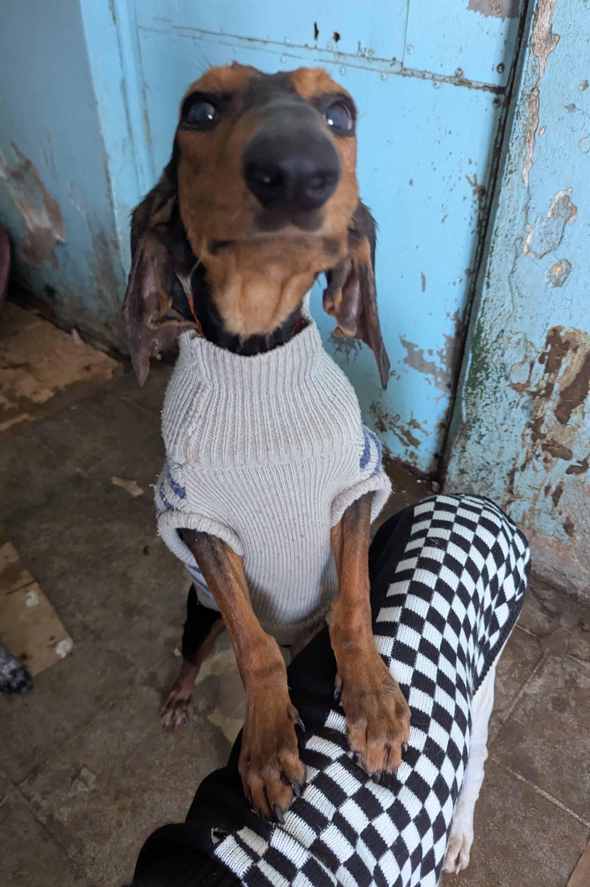 Небольшого размера мальчик охотничей породы Segugi italiano. Активный, общительный, дружелюбный