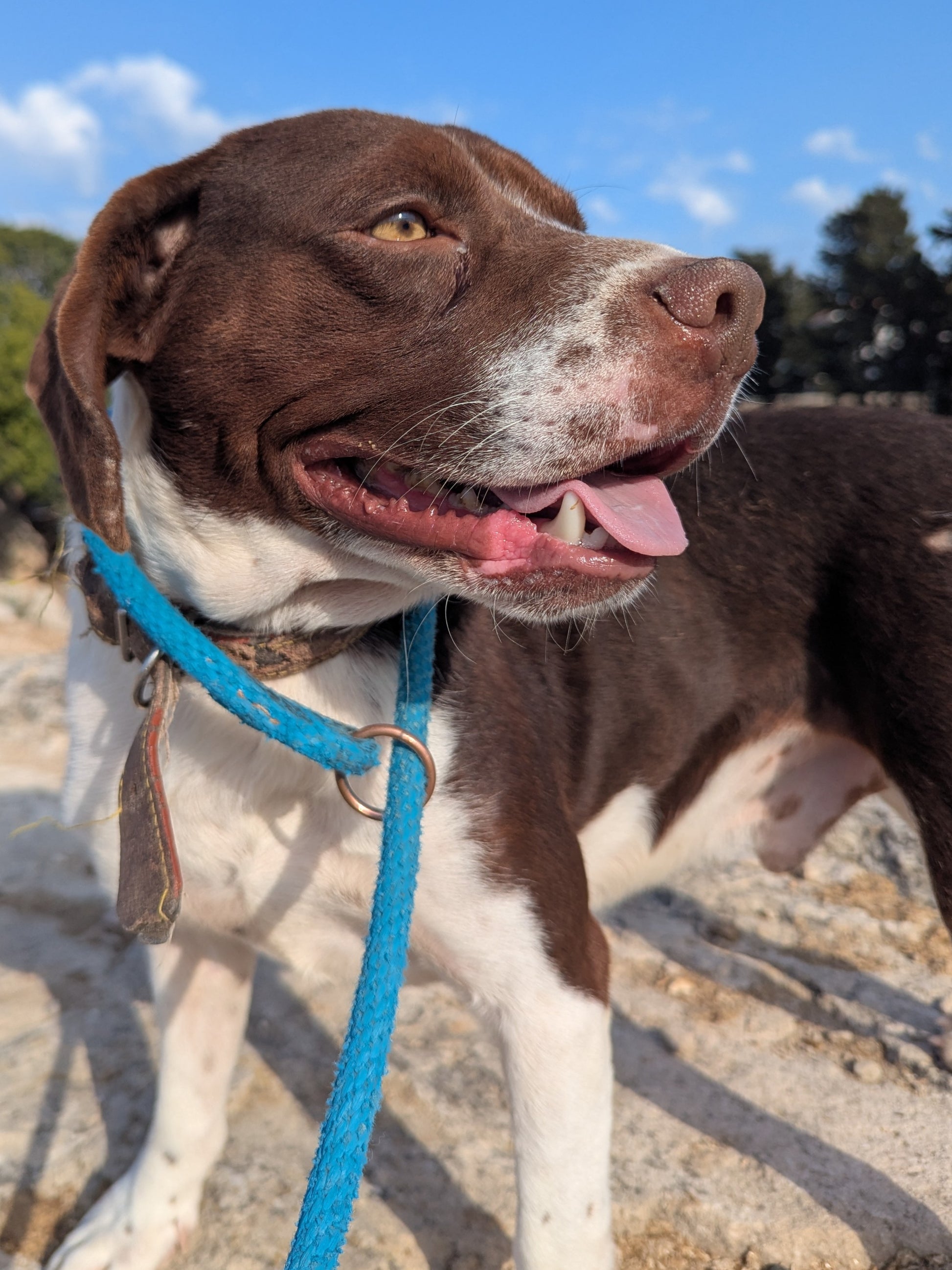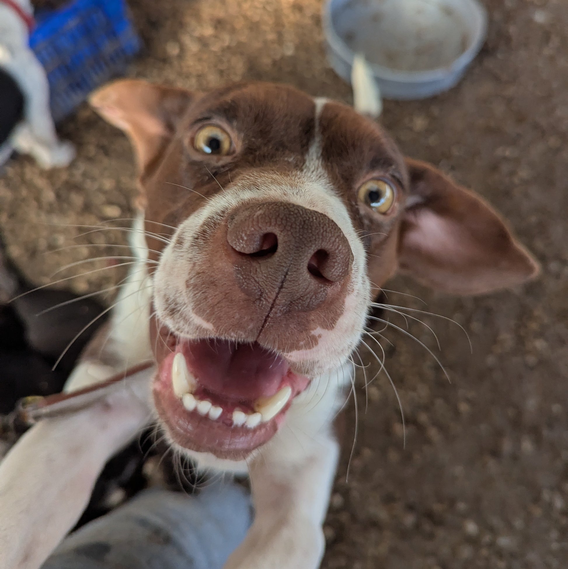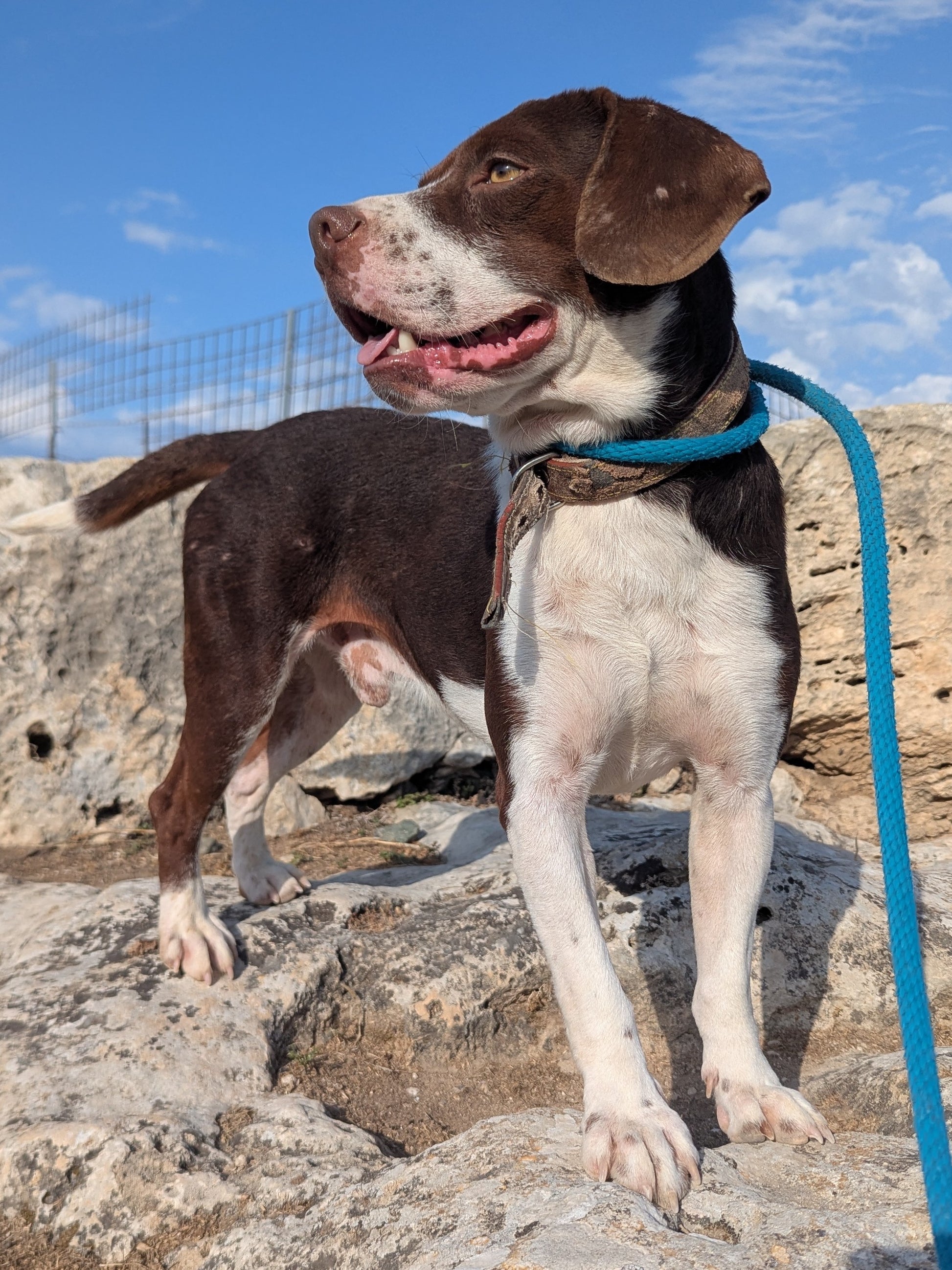 Энергичный пёс небольшого к среднему размера. Красивый окрас, коричневый с белым. Широко раскрытые глаза янтарного цвета. Активный