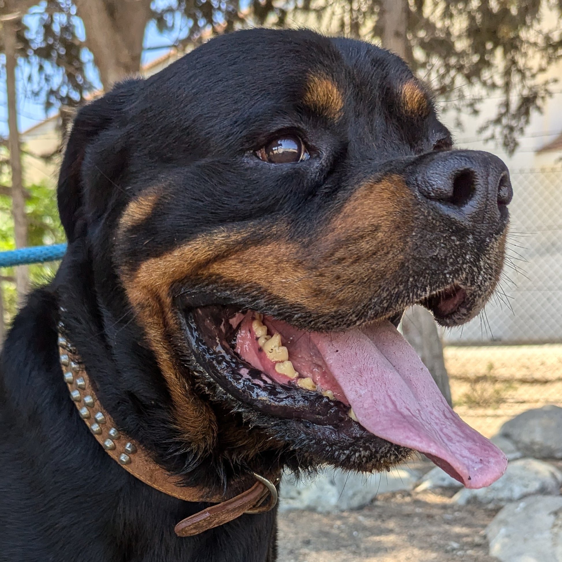 Ротвейлер, около 3 лет, полноразмерный. С людьми и детьми дружелюбен. К собакам и кошкам агрессивен. Приучен к поводку, тянет. Активный