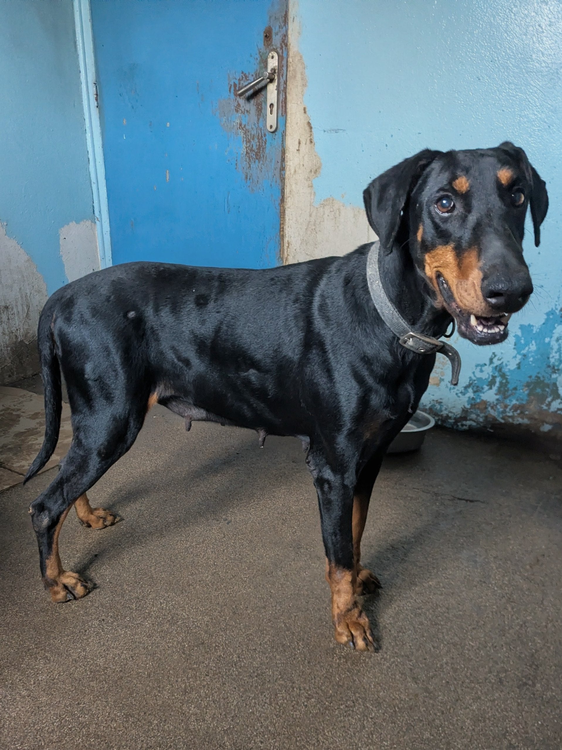 Big Black Mid age Female Doberman